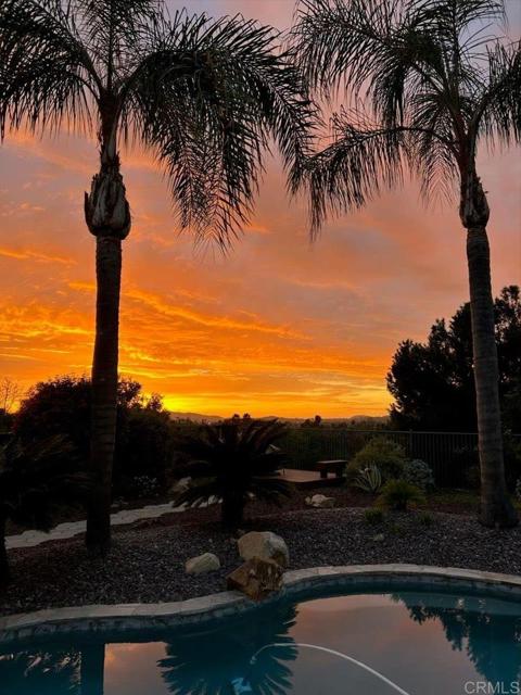 This stunning residence captures the very best of our coveted San Diego lifestyle, offering exceptional living both inside and out. Styled like the pages of a design magazine yet warm and welcoming, every custom detail has been thoughtfully curated and beautifully executed. Designed with effortless entertaining in mind, the outdoor spaces truly shine. Host sunset wine gatherings on the deck, lounge beneath the umbrella on the Baja shelf, or enjoy al fresco dinners under the custom pergola complete with a built-in grill, beverage refrigerator, generous counter space, and mounted TV. This is resort-style living—right at home. Inside, the thoughtfully designed floor plan offers both privacy and openness. Expansive living areas create seamless flow for everyday comfort and lively gatherings, while the private bedroom wing provides a peaceful retreat. The newly remodeled kitchen is a true showpiece, featuring custom cabinetry, an expanded center island, walk-in pantry, and a beautifully crafted custom hood—designed for both style and ease of entertaining. A convenient butler’s pantry connects the kitchen and formal dining room, adding function and elegance. The luxurious primary suite is a serene sanctuary, opening to the breathtaking backyard through oversized French doors. The spa-inspired bath showcases dual vanities, a jetted soaking tub and an impressive walk-in closet. As practical as it is beautiful, the home includes newer A/C (2017), owned solar with 27 panels powering both home and pool, raised garden beds, mature citrus and apple trees, and full irrigation across the half-acre lot. The freshly updated saltwater pool and attached spa complete this exceptional offering—nothing to do but relax and enjoy.