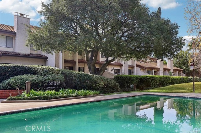 Charming Two-Story Town Home in Prestigious San Marino School District Nestled in a beautiful and serene neighborhood, this spacious two-story home offers an ideal blend of comfort, convenience, and top-rated San Marino Schools. Designed with an open floor plan, the home features a bright and airy living room with a cozy fireplace, a dedicated dining area, and a well-appointed kitchen. The downstairs bedroom can also serve as a den or office, complemented by a bathroom for added flexibility. Upstairs, two generously sized ensuite bedrooms provide ultimate privacy and luxury. The large master suite boasts a custom walk-in closet and a spa-like bathroom with dual sinks, a soaking tub, and a separate shower. The second bedroom also features a custom-built walk-in closet and a private bathroom. Elegant engineered hardwood floors flow throughout the second level, enhancing the home's sophisticated appeal. Designed to maximize natural light, high ceilings and an atrium off the dining area create a seamless connection to the outdoors. The attached two-car garage provides direct access from the kitchen, ensuring convenience. Two sliding doors lead to the private back patio, which opens to the beautifully maintained HOA gardens, pool, spa, and clubhouse—a perfect retreat with lush greenery and peaceful surroundings. Located just minutes from Trader Joe’s, top schools, and public transportation, this move-in-ready home offers the perfect combination of tranquility and urban accessibility. Don't miss this exceptional opportunity!