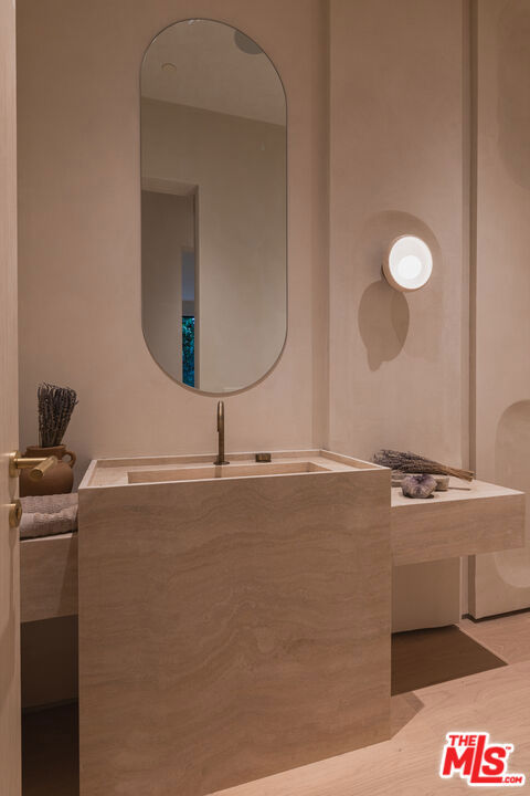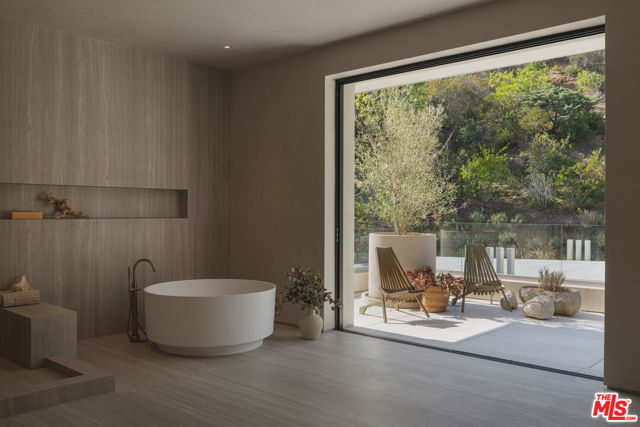Welcome to a private, design-forward architectural masterpiece in the Encino Hills. Gated, secluded, and set on nearly 25,000 sq ft of lush grounds, this newly built 8,500+ sq ft modern sanctuary delivers uncompromising luxury with effortless indoor-outdoor living, curated natural textures, and a resort-inspired backyard. A dramatic double-height entry sets the tone sculptural lines, gallery-scale volumes, and floor-to-ceiling glass flood the interiors with warm natural light. An organic material palette of travertine, stone, and custom millwork forms a calming, tonal aesthetic that feels as much a world-class resort as it does a home. The bespoke chef's kitchen is a showpiece of modern craftsmanship, wrapped in custom cabinetry with integrated Miele appliances, a monumental stone island, and hidden prep spaces. Vast living and dining areas open seamlessly to the outdoors through oversized pocket doors, creating a true California indoor-outdoor flow. The primary suite is a private retreat, featuring a spa-level bath, boutique-style dressing room, and a serene terrace capturing tree-top and canyon views. Five additional en-suite bedrooms offer exceptional scale and privacy, complemented by a state-of-the-art screening room, wellness / fitness space, and a smart-home system controlling lighting, climate, audio, security, and more. Outside, the grounds feel like a boutique resort: a sparkling pool and spa, open-air lounge areas, a full outdoor kitchen and bar, and a dramatic sunken fire pit carved into the landscape. Mature olives, sculpted grasses, and minimalist hardscape blend into the surrounding hillside for complete tranquility. A rare combination of architectural pedigree, privacy, and natural serenity yet moments from the Westside, Ventura Blvd, and the best dining, shopping, and schools in the Valley. An uncompromising statement property for the buyer seeking world-class design and an effortless luxury lifestyle.