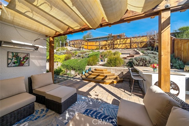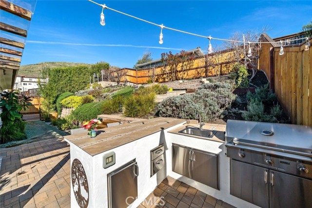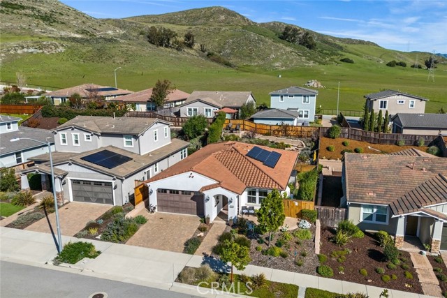 Welcome to 3229 Violet Street in the desirable Serra Meadows neighborhood of San Luis Obispo. This upgraded single-level home blends modern efficiency with elevated Central Coast living. Wide plank hardwood floors and abundant natural light highlight the open-concept layout, seamlessly connecting the living, dining, and kitchen areas. A gas fireplace anchors the living room, while automatic window shutters provide convenient privacy and light control throughout. The kitchen features stainless steel gas appliances, a walk-in pantry, and sliding glass doors that open to the fully landscaped backyard—perfect for indoor-outdoor living. The spacious primary suite offers backyard views and a well-appointed en-suite bath with soaking tub, walk-in shower, dual vanities, and a walk-in closet. Two additional bedrooms and a full bath add flexibility. Outdoor living shines with a fully equipped outdoor kitchen, expansive paver patio with trellis, and an enhanced upper patio deck capturing views toward Edna Valley. Owned solar, Air Conditioning, and whole-house LifeSource filtration system add comfort and efficiency. Minutes to hiking trails, Downtown San Luis Obispo, the SLO Public Market, and SLO Regional Airport, this home delivers the rare combination of modern upgrades, view-oriented outdoor living, and an unbeatable location. Homes with this level of efficiency and upgrades in Serra Meadows don’t last long — experience it before it’s gone.