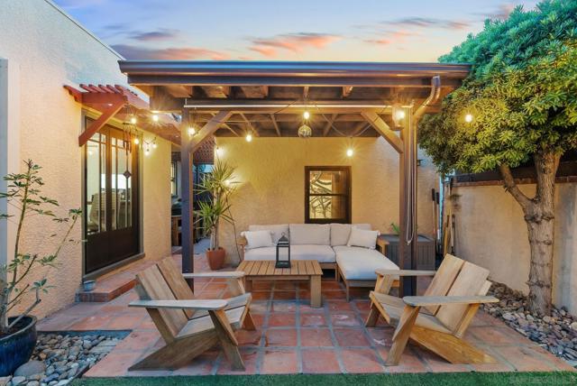 Perfectly positioned just steps from everything you love in Kensington Village, this single-level Spanish beauty w/ OWNED SOLAR blends classic character with effortless livability. From the moment you step inside, you’re welcomed by immaculate original hardwood floors, a stunning barreled ceiling, and a spacious living room anchored by a gas fireplace framed with rich wood built-ins. The layout flows seamlessly into a private dining room just off the kitchen — ideal for intimate dinners or hosting friends before strolling down to Adams Avenue. Natural light fills the home, highlighting its warmth and architectural details. The kitchen offers a warm and functional space designed for both everyday living and effortless entertaining. With generous counter space, abundant cabinetry, and a thoughtful layout, it flows naturally into the dining room while still maintaining its own distinct presence. The rear bedroom features charming doors that open directly to a serene, Zen-inspired backyard retreat. Thoughtfully designed with Spanish tile accents and a beautiful gazebo, the outdoor space feels like a private escape — ideal for morning coffee, al fresco dining, or quiet evenings under the stars. Mature landscaping enhances the sense of privacy while still allowing the space to feel open and inviting. A detached one-car garage provides convenience and flexibility — perfect for secure parking, additional storage, or even a creative studio space. Homes in Kensington at this price point — especially ones that are this turn-key and rich in original character — are exceptionally rare.