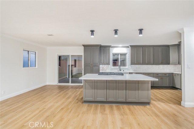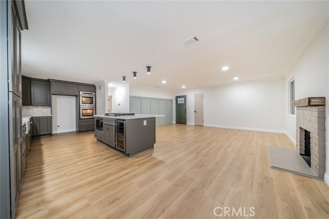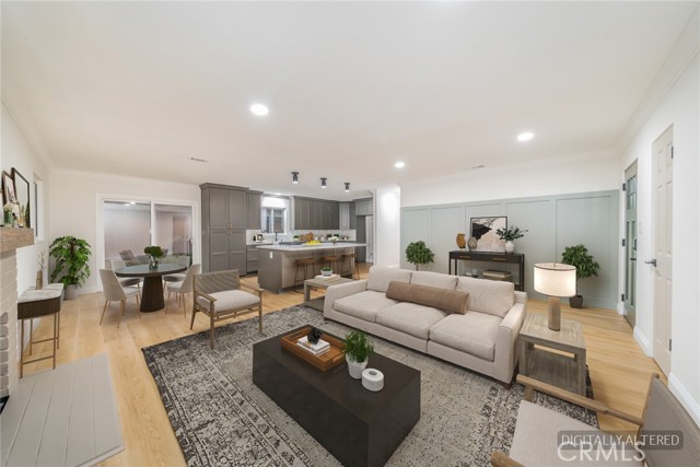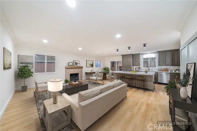 Beautifully refreshed 4-bedroom, 2-bath single-story home situated on a desirable corner lot. Recent upgrades include new interior and exterior paint, brand-new flooring throughout, and updated bathrooms, giving the home a modern, move-in ready feel. Open-concept layout with seamless flow between the living, dining, and kitchen areas. The kitchen features ample storage space, quartz countertops, and a large island with built-in cooktop, wine fridge, microwave, storage, and bar seating. Spacious living room with brick fireplace. Generous backyard with a large covered patio—perfect for entertaining. Detached bonus structure ideal for office, gym, or studio. Convenient access to major commuter routes, shopping, and dining. Move-in ready with space and flexibility to make it your own.