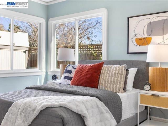 Welcome to this charming 1925 bungalow in Alameda’s vibrant West End. Radiating character and timeless appeal, this thoughtfully maintained home showcases classic period details alongside meaningful updates for modern living. The light filled living room features abundant windows that bring in beautiful natural light, along with a gorgeous fireplace and a rare built in desk that adds both charm and functionality. The spacious dining room includes classic period built ins that highlight the craftsmanship and warmth that define this home. The updated kitchen opens to a sunny breakfast nook, creating the perfect place to start your day. Unusual for a home of this era, the property offers exceptional storage with seven closets throughout, providing everyday convenience rarely found in 1920s homes. This two bedroom, one bath residence also benefits from a newer roof, a detached garage, and a beautiful backyard ideal for gardening, entertaining, or simply enjoying Alameda’s temperate climate. With easy access to the Alameda Farmers Market, the SF Bay Ferry, Ballena Bay waterfront paths, and the shops and restaurants along Webster Street, the location offers the very best of West End living. A true Alameda gem.