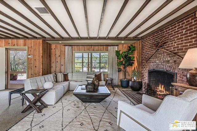 Step back in time at the Blankenhorn-Gilmore Residence, the foundational private estate of Smoke Tree Ranch and a unanimously designated Class 1 Historic Resource. Built in 1930 by master architect Garrett Van Pelt Jr. and sensitively expanded by the iconic Albert Frey, this 5-bedroom, 7-bathroom sanctuary served as the architectural blueprint for the entire enclave. Set on 1.88 deeded acres across three lots plus an exclusive view lot, the 5,504-square-foot home perfectly captures the "Romance of the Old West" with its signature Ranch-style horizontality and board-and-batten exterior. The interiors are a masterclass in rustic sophistication, featuring dramatic exposed-beam ceilings, natural wood-paneled walls, and a massive floor-to-ceiling red brick fireplace. Wooden casement windows frame unobstructed, panoramic mountain views and lead to a private backyard oasis complete with a rectangular pool and integrated spa. This is a rare opportunity to steward a piece of Palm Springs history once owned by the Ranch's principal developer, L. Mac Blankenhorn, offering a level of pedigree and privacy that is simply unmatched.