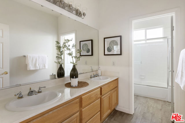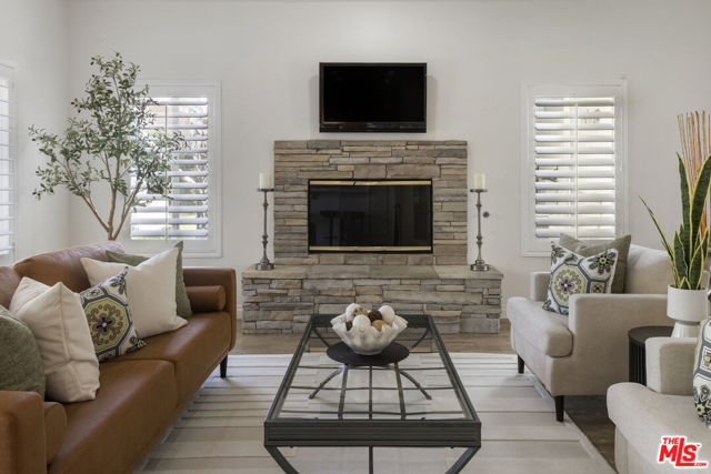 Tucked away on a quiet cul-de-sac, this inviting home blends comfort, functionality and effortless entertaining. Upon entry you are welcomed into a bright living room featuring a custom bar area that flows out to one of the patios and yard. The well-appointed kitchen opens to the family room that is highlighted with a fireplace and leads out to the backyard. A versatile flex space, between the family room and dining area, offers the perfect setting for a home office, study or play room. A spacious bedroom, three-quarter bath and laundry room complete the thoughtfully designed first level. Upstairs the primary bedroom features an ensuite bathroom with a soaking tub and walk-in closet. Two additional bedrooms and a full hall bath are on the second level. Enjoy the indoor-outdoor lifestyle this home offers with a true entertainer's backyard featuring multiple patios and grassy areas, a sparkling pool and spa, a built-in BBQ, a fire pit and a horseshoe pit. This design allows for your own private oasis for relaxation and memorable gatherings. Updates in 2026: new pool heater, new carpet, new lighting fixtures in all bathrooms, kitchen and dining room and freshly painted interior. Additional amenities include: plantation shutters on most of the windows, an attached 450 sq. ft., 2-car garage with direct access to the home, solar panels and central air and heat.