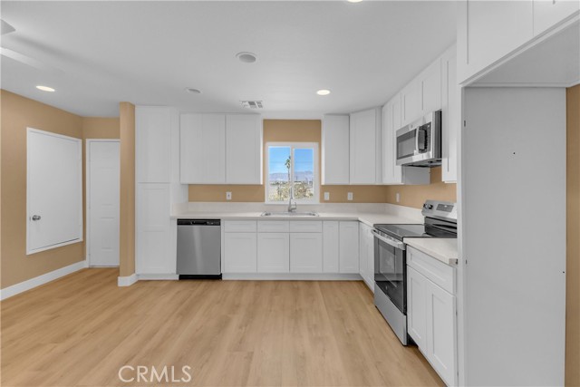 Your own slice of desert serenity in Salton City. Set on an expansive, nearly 9,000 sq ft lot, this freshly remodeled 4-bedroom, 2-bath home is move-in ready and thoughtfully designed for comfortable living. The functional floor plan features two separate bedroom wings, offering added privacy, and includes a primary suite. Enjoy the convenience of indoor laundry hookups in a dedicated space and a two-car attached garage. With no HOA fees and wide-open surroundings, this home offers space, flexibility, and peaceful views—ready for you to make it your own.