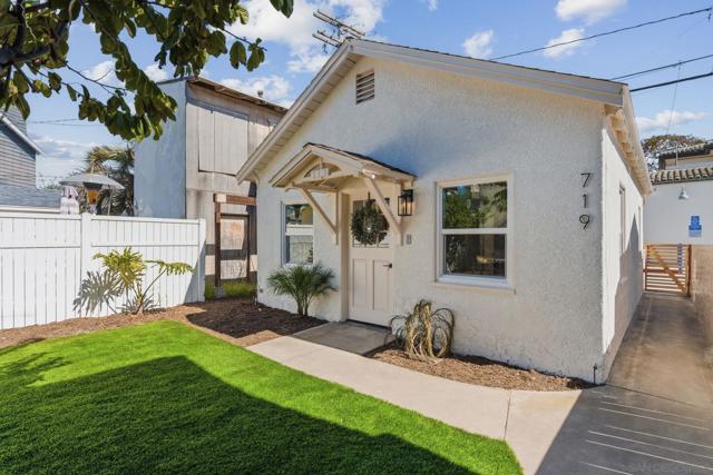 Two renovated, detached homes on one lot in the heart of the Village. Separated utilities and entrances and yards plus alley access for rear home. Main home features three spacious bedrooms, 1.5 baths, owned solar panels, brand new floors, new doors, new windows and new slider. Brand new HVAC system, beautiful new kitchen; (appliances, counters, flooring). Walkable to restaurants, movie theater, gym, stores, schools and parks. Plenty of off-street parking, too. Oversized bedrooms are upstairs with the primary bedroom featuring a west-facing patio and French doors. The rear home is approx 382 square feet and is a renovated studio apartment with alley access and a yard. butcher block counters, LVP flooring and a contemporary bathroom. New artificial turf back yard plus a sitting area. New privacy gates. The front home has a driveway plus a 2-car garage with multiple potential uses; cars, gym, storage - all options are available. Brand new HVAC system for main home. Oversized bedrooms are upstairs with the primary bedroom featuring a west-facing patio and French doors. All windows, doors and sliders throughout are insulated and top quality. The rear home is approx 382 square feet and is a renovated studio set-up with alley access and a yard. Butcher-block counters, LVP flooring and a modern bathroom and separate utilities. Great income potential with privacy. Welcome to the wonderful Coronado Lifestyle!