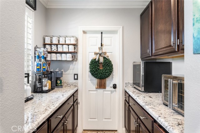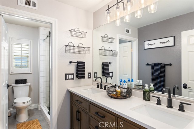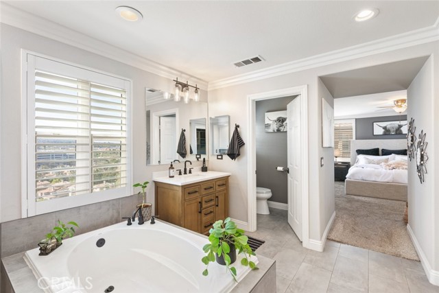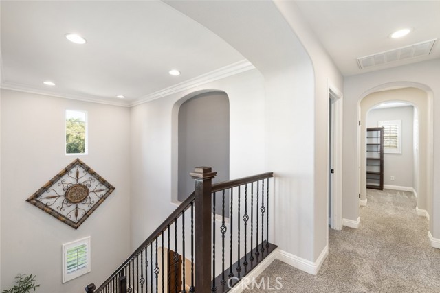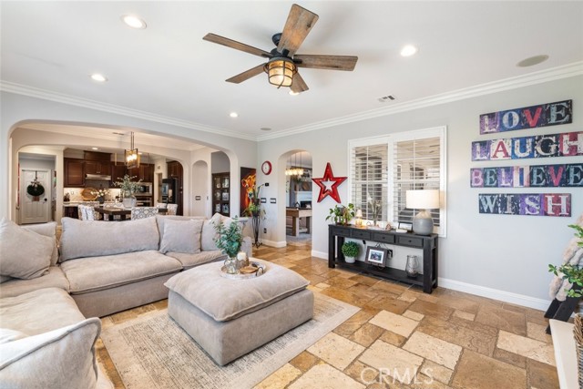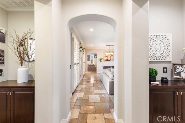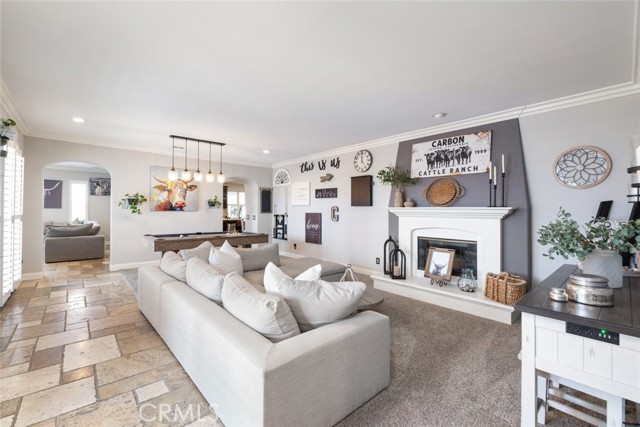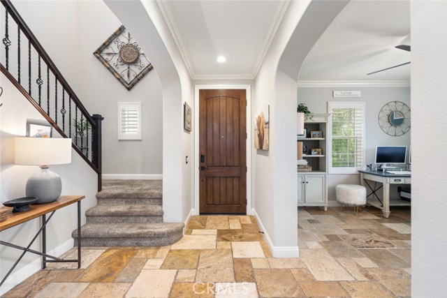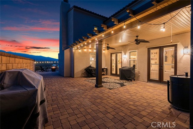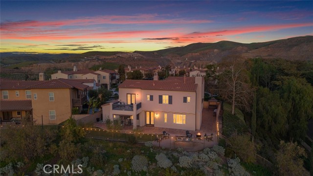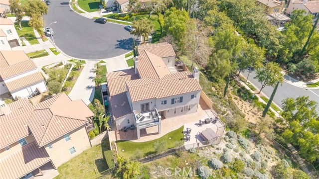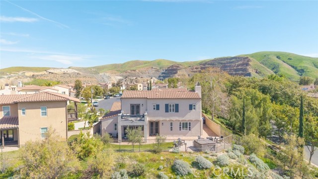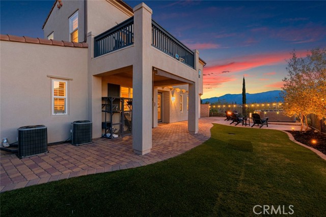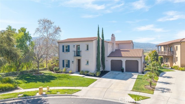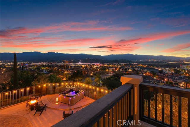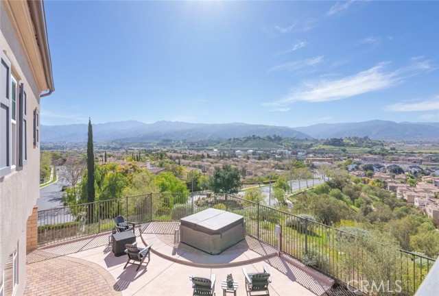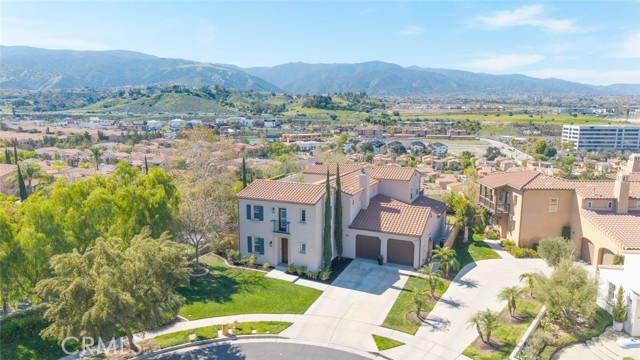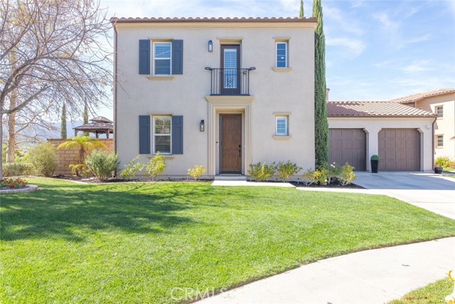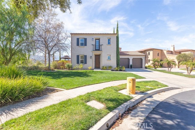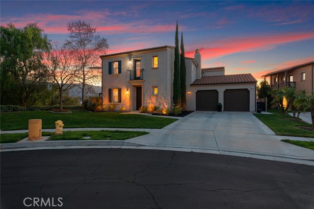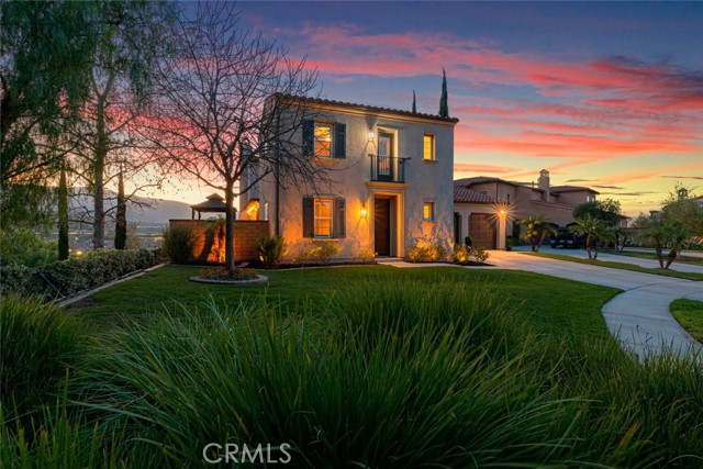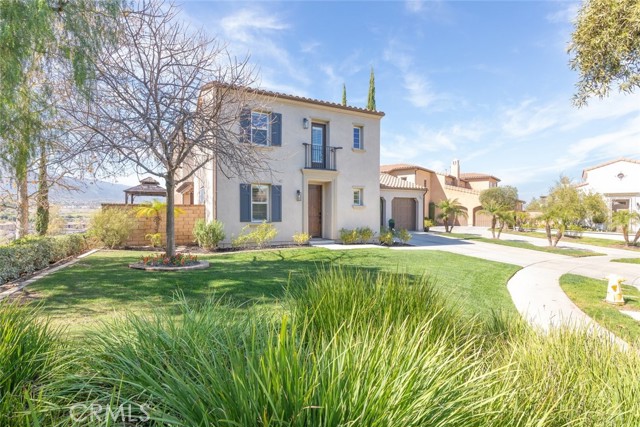 Welcome to Temescal Heights at Dos Lagos — one of Corona’s most desirable gated communities! Situated at the end of a quiet cul-de-sac, this magnificent residence offers stunning curb appeal with a spacious front yard, lush greenery, and an inviting presence that sets the tone for what awaits inside. Offering 4 bedrooms, 3 bathrooms plus a dedicated office (optional 5th bedroom), this home showcases a bright, open floor plan enhanced by beautiful travertine stone flooring. The formal living room features a cozy fireplace and flows seamlessly into the elegant formal dining room — perfect for gatherings and special occasions. The expansive family room also boasts a fireplace along with a built-in media niche for comfortable everyday living. The chef-inspired kitchen is beautifully appointed with rich dark cabinetry, gorgeous granite countertops, stainless steel appliances, a convenient butler’s pantry ideal for entertaining, and a spacious walk-in pantry for exceptional storage. An elegant wrought-iron staircase banister adds a dramatic architectural touch. Upstairs, the luxurious primary suite is truly fit for royalty, offering a spa-like bathroom complete with a soaking tub, walk-in shower, dual sinks, and a generous walk-in closet. Step out onto your private balcony and take in breathtaking panoramic views of rolling hills, mountains, and sparkling city lights — a spectacular backdrop both day and night. Additional interior features include ceiling fans, plantation shutters, and crown molding throughout. The backyard is designed for relaxation and entertaining, featuring a beautiful paver deck, alumawood patio cover with ceiling fans, maintenance-free turf, and a private hot tub where you can soak while enjoying the stunning scenery. Don’t miss this rare opportunity to own a view home in one of Corona’s most sought-after gated neighborhoods.
