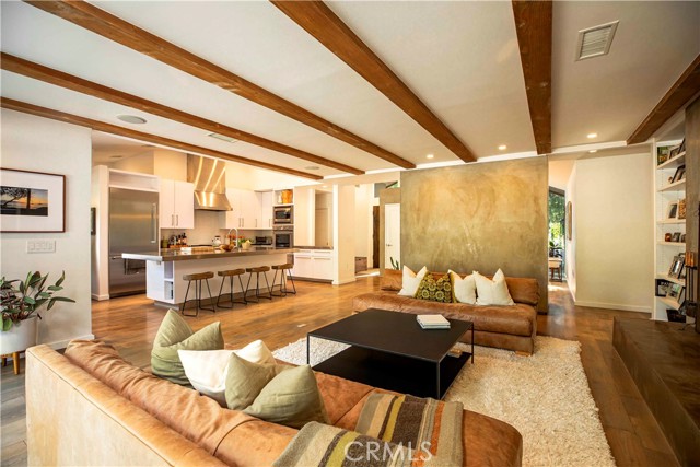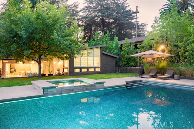 Set beneath a canopy of mature Deodar pines in the coveted Upper Alta Canada enclave of La Canada Flintridge, this striking single-story architectural residence embodies the essence of California midcentury modern living. Originally reimagined by architect Christopher Mercier, this home is a masterclass in light, scale, and seamless indoor-outdoor connection. Vaulted ceilings and expansive walls of glass invite natural light to pour into the interiors, creating an effortless dialogue between architecture and landscape. Skylights punctuate the living spaces, while clean lines and warm materials establish a sophisticated yet relaxed atmosphere designed for both entertaining and everyday living. The thoughtfully designed floor plan features four bedrooms, highlighted by a screen primary suite with a generous closet and private office retreat. A formal dining room flows into an impressive great room that opens to sweeping views of a park-like grounds beyond. At the heart of the home, the chef's kitchen pairs sleek stainless steel countertops with Thermador appliances, blending modern functionality with timeless design sensibility. Outside, curated outdoor living spaces unfold across tranquil patios, a gas fire feature, sparkling pool and spa and expansive lawn areas- and ideal setting for quiet mornings, sunset gatherings, and year-round California living. Perfectly positioned with convenient access to hiking trails, major freeway access, downtown Los Angeles, and award-winning La Canada schools, this resilience offers architectural pedigree, privacy, and effortless sophistication in one of the area's most desirable neighborhoods.