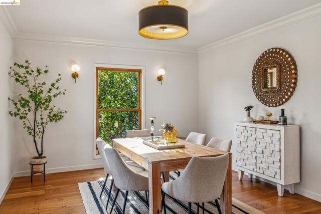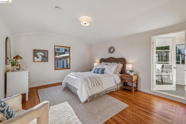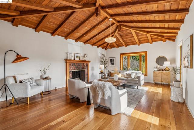 A Light-Filled Piedmont Home ~ This special home sits at the end of a serene cul-de-sac, just moments from the shops and cafes of Piedmont Avenue and Rockridge. Period details include hardwood floors, wood burning fireplace and cathedral ceiling in the living room. An eat-in kitchen opens to the level deck and back gardens; creating a natural extension of the home for relaxing, gathering, and outdoor play. The main level features a central foyer connecting the dining room, living room, and kitchen, plus a versatile bedroom suite with en-suite bath. Upstairs, two bedrooms and a sunroom overlook the yard. With multiple living zones, indoor-outdoor connectivity, and a layout that supports both privacy and togetherness, this cherished abode is a rare opportunity in a sought-after Piedmont neighborhood. Classic architecture, peaceful surroundings, and proximity to vibrant neighborhood corridors come together in a home that feels both timeless and deeply welcoming. Just blocks from Dracena Park and playground.