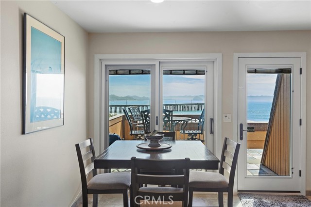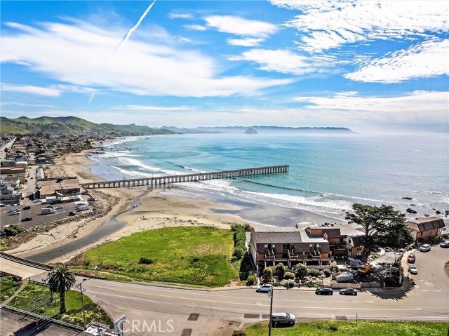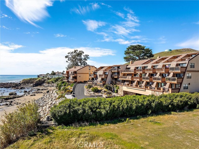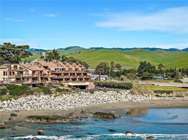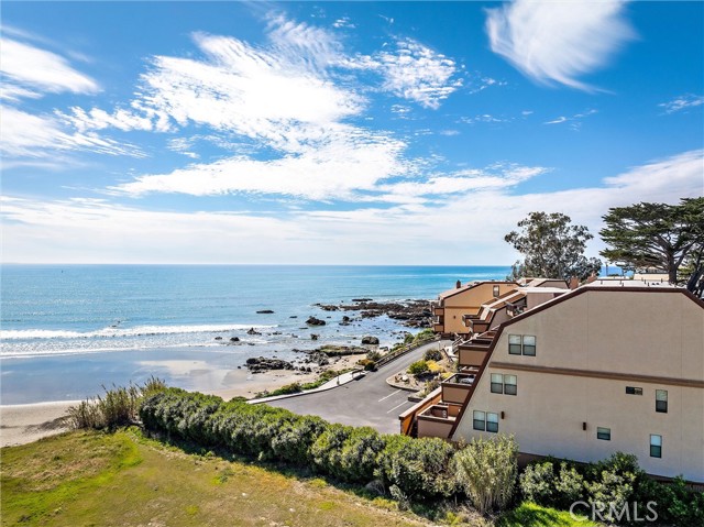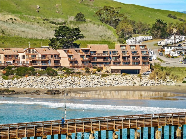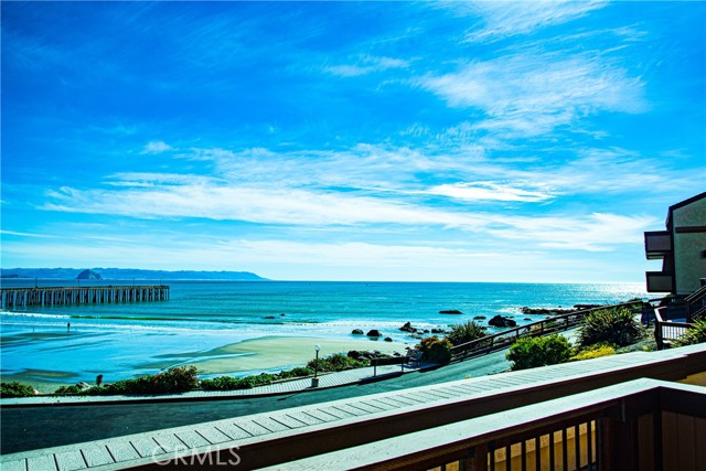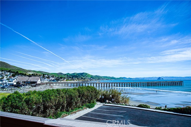 Stellar Site for this short-term licensed condo in a renowned oceanfront complex. Beach access and sweeping views of Estero Bay, Morro Rock, Pier and Cayucos put this unit on repeat for vacation time or a desirable income producing rental. The efficient plan has no hallways and easier access than levels above. Access from the wide deck is via door, or siding door and the great room looks beyond the expansive deck to the changing ocean scenes. Storage just inside is ideal for deck and beach gear. The kitchen has ample counter space, a special pantry cabinet and its own ocean views. The bathroom functions ensuite for the bedroom via a sliding door. On-site laundry facilities and covered parking and gated entrance add to the convenience. Unit can be purchased fully furnished. Don’t miss this array of features and benefits!