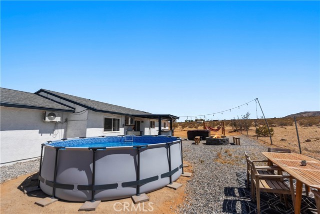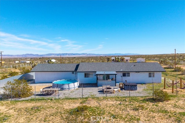 Set on a 2.27-acre parcel just off paved Reche Road, this beautifully designed 4-bedroom, 2-bath home offers space, style, and flexibility in the heart of Landers. The 1,346-square-foot interior has been thoughtfully remodeled with a cohesive, modern feel and an all-electric setup. The layout works well for full-time living, long-term tenancy, or future short-term rental use. Outdoor amenities include a fenced yard, patio, above-ground pool, and hot tub—ideal for enjoying wide-open desert days and star-filled nights. A dedicated laundry room and attached 2-car garage add everyday convenience, while the expansive lot provides privacy and room to breathe. Located in a desirable area with easy access to Yucca Valley, Joshua Tree, and local high-desert favorites, this is a versatile property that fits a range of lifestyles and goals.