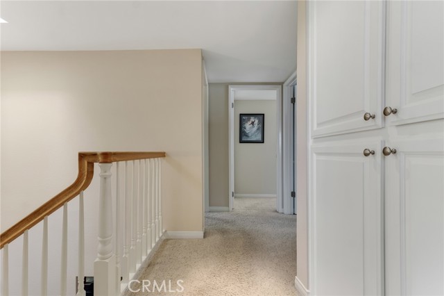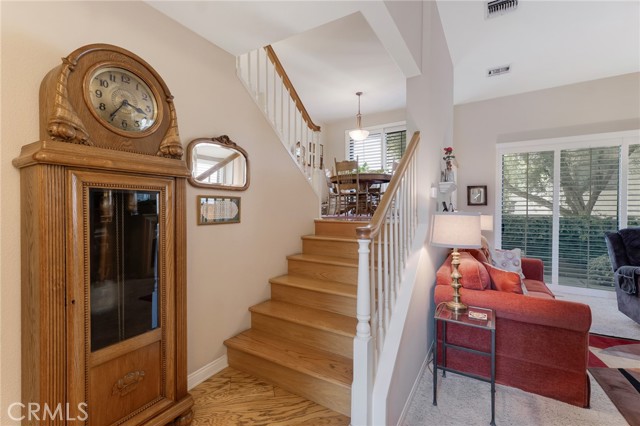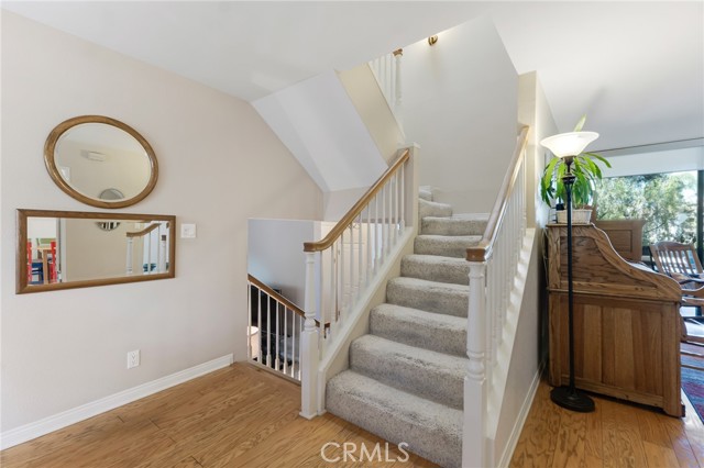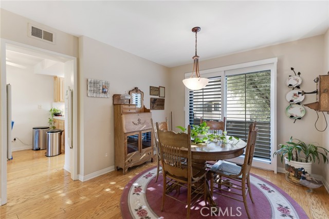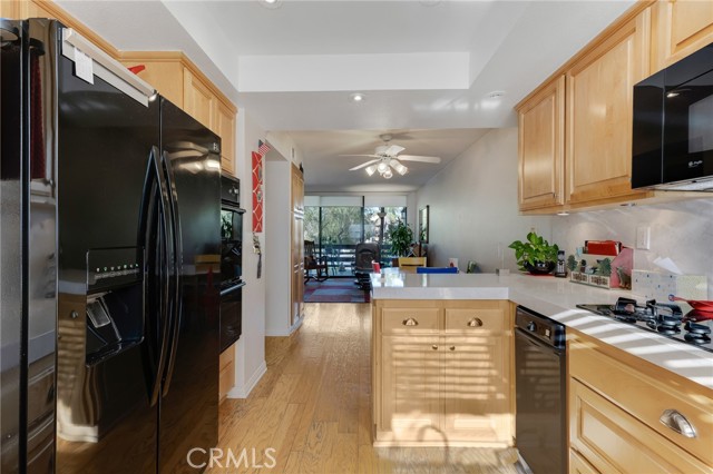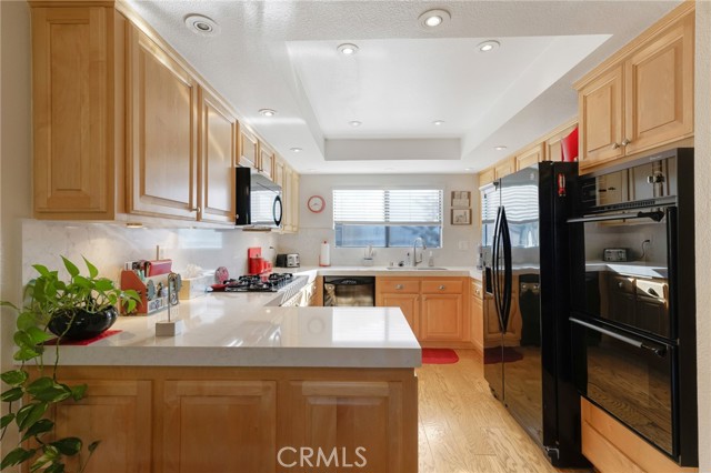 Located within the desirable Warner Village community in Woodland Hills, this beautifully situated end unit townhome offers exceptional privacy facing the tranquil greenspaces of Warner Center Park and only one shared wall. With nearly 1,800 sq ft of living space and four private outdoor areas, this 3 bedroom, 2.5 bath residence features a split-level layout, soaring ceilings, and abundant natural light throughout. Double doors open to a welcoming foyer with a convenient powder bath for guests. Step down into the formal living room highlighted by vaulted ceilings, a central fireplace, and oversized sliding glass doors leading to an enclosed patio. A short flight up reveals the formal dining room with sightlines to the living area and sliding doors opening to a balcony. Adjacent, the kitchen is appointed with maple cabinetry, quartz countertops, built-in gas range with overhead microwave and vent, wall oven and broiler, dishwasher, and trash compactor. The adjoining family room offers generous proportions and wall-to-wall sliding glass doors that open to a deck overlooking a peaceful, trickling stream. Wood flooring extends across the main and mid levels (with carpet in the formal living room), while carpeting continues on the stairs and upper floor. Downstairs from the foyer, a flexible bonus room (not included in total square footage) is ideal for a home office, studio, gym, storage, or potential fourth bedroom, complete with a dedicated laundry area and direct access to the 2 car garage featuring built-in storage cabinets and a newly installed electrical panel (late 2025). All bedrooms are located upstairs, including the primary suite with an elevated vaulted ceiling, private balcony, walk-in closet, dual sink vanity, and oversized shower. Two secondary bedrooms—one with a vaulted ceiling—are served by a full hall bath. Warner Village residents enjoy HOA amenities including 2 pools, 2 spas, tennis courts, and manicured grounds with streams, waterfalls, and mature landscaping; water, trash, basic cable, exterior maintenance, and insurance are included in the dues. Ideally situated near shopping, dining, and entertainment at Westfield Topanga and The Village at Warner Center, summer concerts and events at Warner Center Park, local recreation, and convenient access to the Ventura Freeway (US 101), this home offers comfortable living in one of the Valley’s most connected neighborhoods.