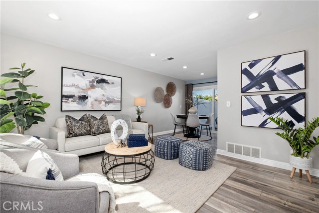 Welcome to beach city living at its finest in the desirable Bayshores community of Huntington Beach, with low HOA dues of just $280/month! This beautifully remodeled townhome blends modern upgrades with effortless Surf City charm just 4.5 miles from the sand. The kitchen showcases sleek quartz countertops, stainless steel appliances, and a sliding glass door that seamlessly connects the dining area to a private outdoor patio—perfect for entertaining or enjoying your morning coffee. The light-filled living room features expansive windows, recessed lighting, and an extra-deep closet offering exceptional storage. Upstairs, you’ll find two spacious bedrooms with large windows and a fully remodeled bathroom highlighted by a gorgeous custom-tiled shower. Step outside to your serene patio retreat—complete with no rear neighbors, high privacy walls, and swaying palm trees that capture the true essence of Huntington Beach. Whether hosting friends or unwinding after a beach day, this outdoor space delivers tranquility and seclusion. Additional highlights include a dedicated carport with added storage plus additional community parking. Residents of Bayshores enjoy amenities, including a pool and clubhouse, in addition to landscape maintenance as well as water and trash, which are included! Ideally located in the heart of Huntington Beach near shopping, dining, and multiple parks, and just minutes to world-famous beaches, this home offers the perfect blend of comfort, style, and coastal lifestyle.