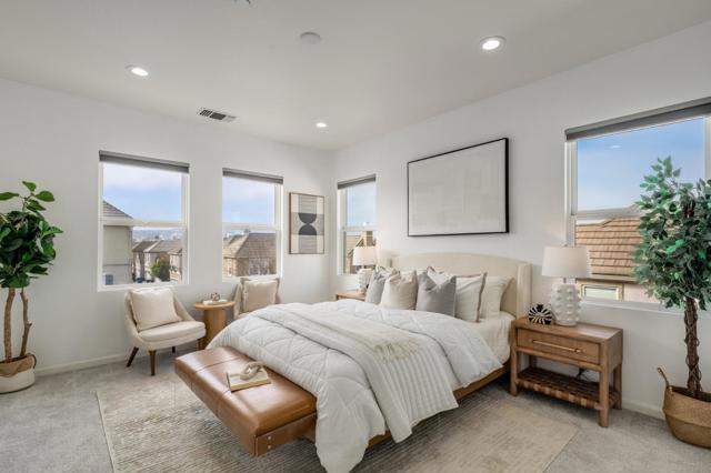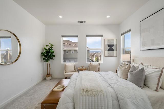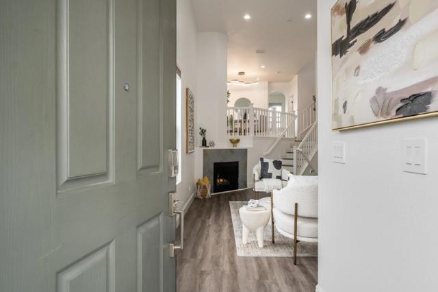 Meticulously Remodeled Bay Meadows End Unit | Walk to Whole Foods & Parks Low Maintanence & Simple Living Lifestyle! True turnkey and upgraded throughout. This 3-bedroom, 2.5-bathroom corner unit in San Mateo's sought-after Bay Meadows community has been meticulously remodeled with modern finishes and thoughtful details at every turn. Walk in and notice fresh paint throughout the entire home. The open-concept main level features soaring high ceilings, abundant natural light, a cozy fireplace with designer accent wall, and a split-level layout that creates distinct living and dining areas. The remodeled kitchen boasts quartz countertops, a center island, breakfast nook, and dual gas appliances. Recessed lighting runs throughout. All bedroom closets feature custom organized shelving systems. A covered balcony deck adds private outdoor space. The two-car garage comes finished with epoxy flooring and a Tesla EV charger. Location, location, location. Walk to 18 acres of community parks. Bay Meadows KinderCare is on the same street, and the home is zoned for top-rated George Hall Elementary (A, Niche), Abbott Middle, and A+ rated Hillsdale High. Minutes to Hillsdale Caltrain and Highways 101/92. Buyer to verify all information including but not limited to zoning, and HOA dues.