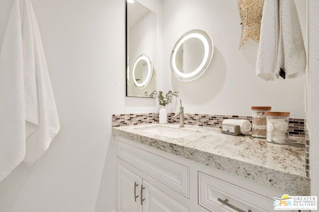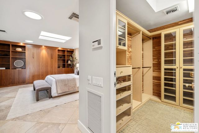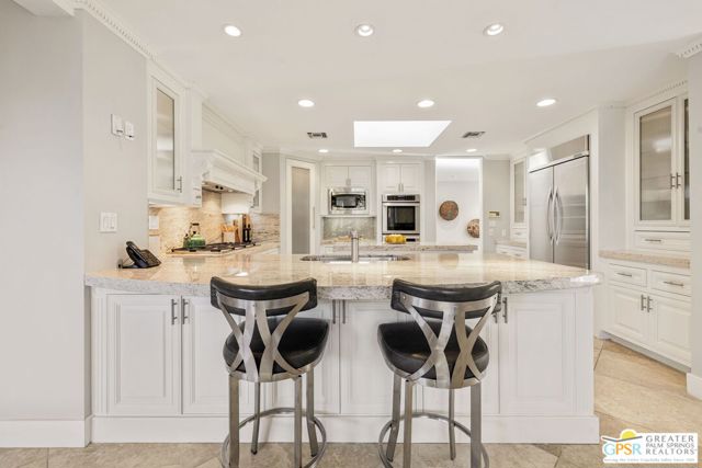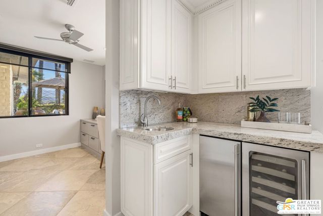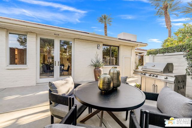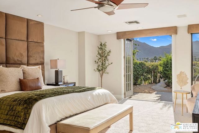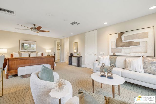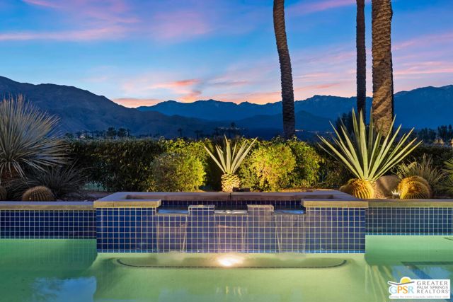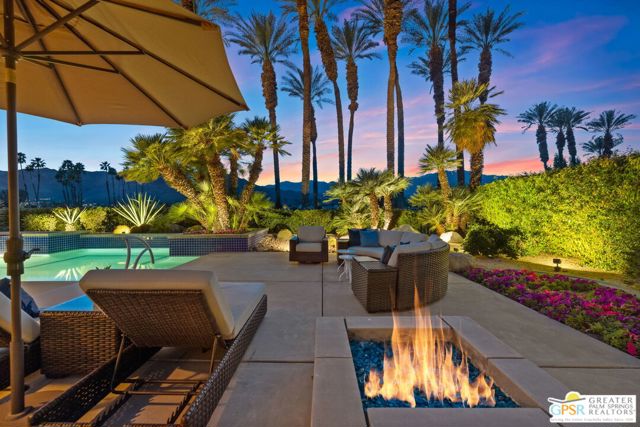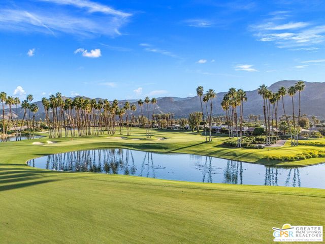 Uninterrupted, front-row views across multiple fairways, shimmering lake, and the Santa Rosa and San Jacinto mountains define this expanded and highly customized Oakmont 4 residence at The Club at Morningside. Formerly owned by actor and singer Buddy Rogers, the 3 bedroom + office, 3.5 bath home blends Hollywood heritage with the refined lifestyle of one of Rancho Mirage's most respected private clubs. Positioned at the end of a quiet cul-de-sac, the setting delivers privacy, scale, and a memorable sense of arrival. A formal gallery-style entry opens to a voluminous living space where floor-to-ceiling windows immediately capture the sweeping landscape beyond. The south-west facing formal living and dining area is anchored by a striking fireplace and dual glass doors that extend the living experience to layered outdoor spaces designed for both entertaining and quiet desert evenings. The adjacent kitchen, casual dining area, and family room continue the indoor-outdoor connection through a series of French doors opening to the patio. Skylights, a generous island, and a built-in appliance suite enhance both function and natural light. A dedicated office enjoys views, providing an inspiring setting for work or creative pursuits. The Primary Suite offers a retreat-like atmosphere with panoramic views and direct access to the backyard pool and spa. The ensuite bath features dual sinks, soaking tub, walk-in shower, and two cedar-lined closets. Junior Ensuite Two is thoughtfully positioned for privacy, while Junior Ensuite Three includes its own retreat, private patio, walk-in closet, and ensuite bath. A powder bath, inside laundry, and direct access to a two-car plus golf-cart garage complete the interior. Recent improvements include fresh interior paint and newly installed HVAC systems. Ownership at Morningside offers access to an optional membership experience within a private equity club known for its lush landscaping, vibrant seasonal color, and exceptional location in the heart of Rancho Mirage. A rare opportunity to enjoy commanding views, generous scale, and timeless club living in one of the desert's most beautiful communities.