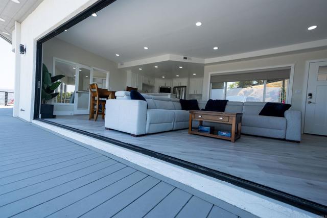 Possibly the most epic view in all of San Diego, this Mount Merritt retreat offers a breathtaking 280 degree panorama view of city lights and mountains. Slide open the 19-ft cantina door and watch the sunset from your very own private deck. This move in ready home has many modern upgraded including: Quartz countertops, luxury vinyl flooring, Smart color changing lighting throughout the entire house, Spa-style bath, Bluetooth bathroom speaker, Ecobee temperature control, High capacity washer and dryer, 50-amp plugs in garage and outside for EV/RV, New garage door, Secret fireplace mantel, Hunter Douglas sheer shades and much more! With a 2-car garage, massive driveway, space for RV parking, newly landscaped 3/4-acre lot and approved plans for a master bathroom suite, this is a must see. This is a very unique home that makes every day feel like a getaway. Owner took exceptional care of this home and it shows! PLEASE DO NOT STEP ONTO PROPERTY WITHOUT A SCHEDULED SHOWING APPT.