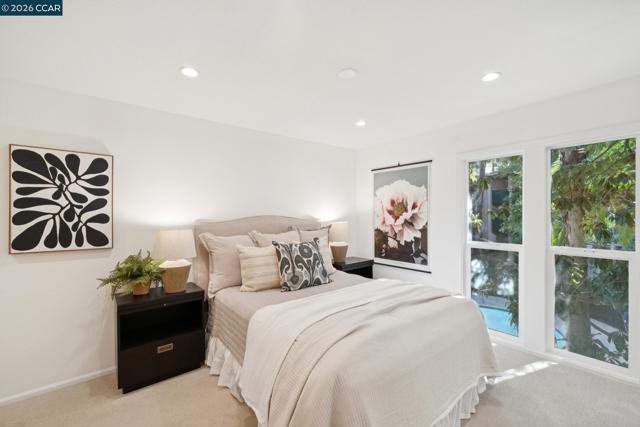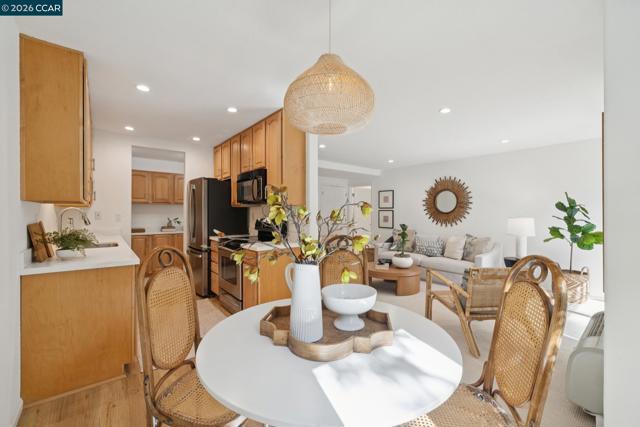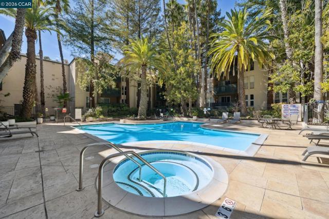 Rare opportunity in coveted Greenwood community, located in the heart of downtown Walnut Creek. This 2 bed/2 bath home w views of gardens & pool, has been beautifully updated w/new windows & slider, fresh interior paint, new carpet & luxury vinyl flooring, new/updated recessed lighting + chandelier, kitchen refreshed - new countertops, sink & faucet & newer appliances along w/refreshed bathrooms w new lighting, mirrors. With lots of natural light, this home offers open living/dining spaces that opens updated kitchen all with access to the exterior balcony - ideal for entertaining on warm summer nights. Private primary suite includes spacious closets w/custom built ins, large vanity with quartz countertop & generous storage, large mirror and updated sconces + private shower/water closet. Second bed/bath offer privacy, large closet, new countertops, mirror & lighting + separate shower/water closet. Greenwood, a well-maintained community - resort-style amenities w/multiple pools, hot tubs, game room, fitness center, beautifully & lush landscaped grounds & pathways. Minutes from downtown Walnut Creek’s top-rated schools, vibrant shops, grocery stores, many dining options—easy access to BART & commute routes. Rare combination of space, privacy, & location in the heart of Walnut Creek.