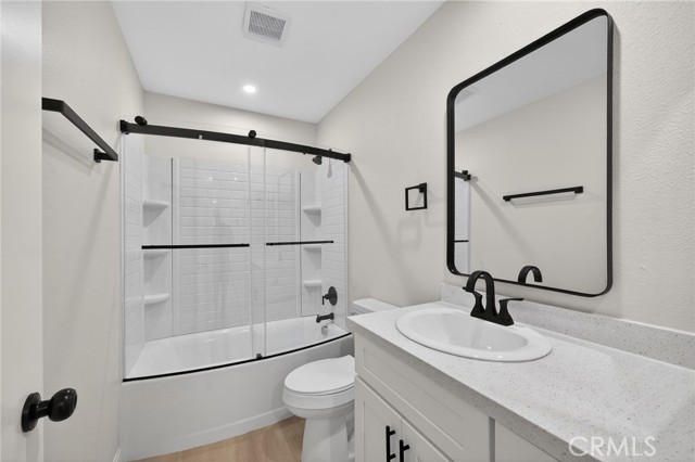 FHA can be submitted after April 23rd, VA and conventional welcome. Freshly updated 55+ home in the Sun City community of Menifee. With 1,348 square feet, you need to check out the floor plan and 3d tour of the home. With an extravagantly updated open floor plan, you are greeted with a beautiful large open living room, and just around the corner new counter tops, new stainless steel appliances anchoring the open space, with formal living, dining and breakfast nook. Both bathrooms have just been updated with floor to ceiling tile complete with glass enclosures, detailed with new finishes, A large private patio in the backyard offers one more space to enjoy your home and additional side of home parking. mature hedge at rear of the property for privacy. Low maintenance rock landscape, One other great feature of this home in the fully enclosed single car garage and a private large laundry.