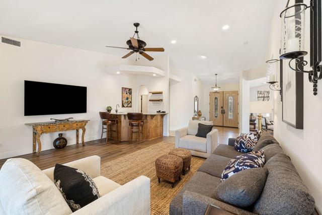 TURN KEY - FULLY FURNISHED PRIME South Palm Desert home hits market!Approx 3,300 square feet of thoughtfully designed living space, featuring 4 bedrooms and 3 custom bathrooms. The interior blends timeless desert elegance with modern upgrades, showcasing vaulted ceilings, a formal great and dining room, a spacious living room anchored by dual fireplaces, and a wet bar with a dedicated entertainment lounge feel. The kitchen is equipped with BOSCH appliances, granite slab countertops, and premium fixtures that complement the home's refined aesthetic. Custom bathrooms, designer lighting, upgraded plumbing finishes, and carefully selected hardware throughout add a level of polish rarely found in the rental market.Out back, a private resort-style escape awaits. Extensive patio coverage, decking, and layered outdoor living areas create a seamless indoor-outdoor experience. The pebble-tech pool and spa sit at the heart of the yard, surrounded by generous space for hosting, dining, and relaxing in complete privacy. Whether you're entertaining under the covered patio or unwinding poolside at sunset, the backyard delivers the lifestyle the desert is known for--effortless, luxurious, and serene.This property truly checks every box: PRIME South Palm Desert location, over 3,000 square feet, 4 bedrooms, 3 bathrooms, pool and spa, 3-car garage, and fully furnished--offered completely turnkey and move-in ready.!