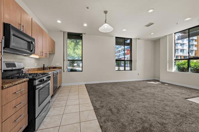 Urban living at its best in this one-bedroom corner residence at Union Square. This walk-up unit features high ceilings, oversized windows, and an open kitchen with granite countertops, gas range, and under-cabinet lighting. Enjoy a spacious bedroom with a walk-in closet and convenient in-unit stackable washer and dryer. Just steps to dining, culture, freeway access, and Petco Park—perfect for a downtown retreat.