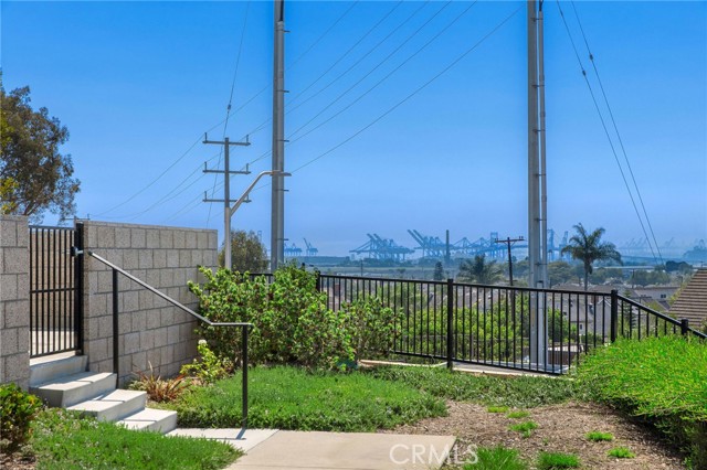 Experience panoramic views from The Vincent Thomas bridge to Palos Verdes Hills in this rare unit townhome. Perfectly positioned to capture natural light and refreshing breezes morning and evening, this home offers a serene retreat where every day feels like a getaway. Enjoy your private balcony to sip your coffee in morning. Completed in Summer 2022, this 1,828 sq. ft. residence blends contemporary elegance with cutting-edge efficiency. The open-concept living area showcases luxury vinyl plank flooring and a designer kitchen featuring sleek quartz countertops, a custom tile backsplash, a full wrap-around island, and premium stainless steel appliances. The flexible first-floor en-suite bedroom is ideal for a home office, gym, or creative studio. Upstairs, the primary suite offers dual sinks, white cabinetry, walk-in closet, and dazzling views of Palos Verdes hills,. Two additional bedrooms ensure space for family and guests. This home comes fully equipped with paid solar panels and Energy Star dual-zoned A/C. Smart home features include, video doorbell, Wi-Fi-enabled door lock, two-stage smart thermostat designed for comfort, convenience, and efficiency. Located in a secure, gated community less than five miles from the Pacific Ocean, Ponte Vista offers resort-style amenities including a pool, Jacuzzi which are just steps away, expansive clubhouse, scenic walking trails, dog parks, and the largest park in the neighborhood. You’ll enjoy quick freeway access, proximity to shopping, beaches, and the exciting new San Pedro waterfront with its growing array of dining, entertainment, and future developments.