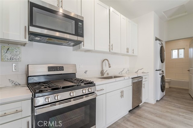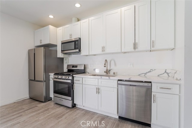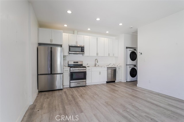 Welcome to this beautifully designed new JADU located in the heart of North Hollywood. Offering 515 square feet of thoughtfully designed living space, this 1-bedroom, 1-bathroom residence combines modern style with everyday comfort. This JADU is attached to the main house, and there are a total of three units on the lot, creating a well-planned and efficiently utilized property. Inside, soaring high ceilings and recessed lighting create a bright, open atmosphere throughout. The contemporary kitchen is equipped with sleek stainless steel appliances, providing both functionality and a polished look. The spacious bedroom offers a comfortable retreat, while the full bathroom features clean, modern finishes. Enjoy the convenience of an in-unit washer and dryer, making daily living effortless. This newly built delivers privacy, efficiency, and modern living in a prime location close to shopping, dining, and entertainment.