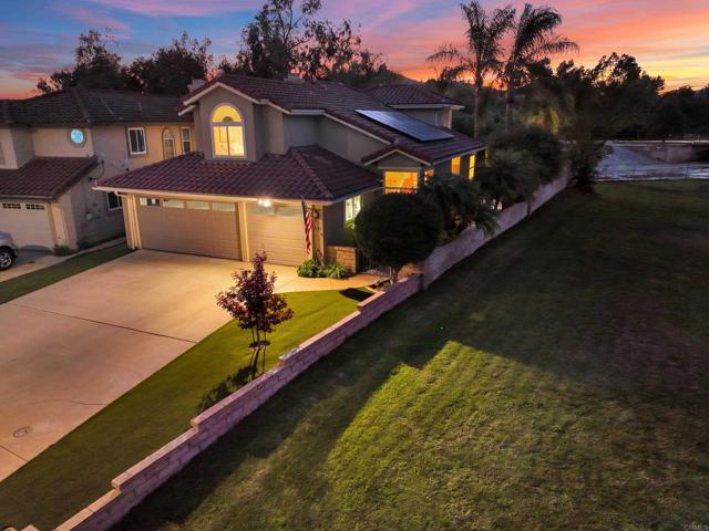 Welcome to your dream home in the heart of Escondido, nestled in the peaceful Laurel Valley community. This beautifully maintained two-story residence offers a seamless blend of comfort, functionality & timeless appeal. From the inviting gated entry & soaring vaulted ceilings to the serene private garden, every detail has been thoughtfully designed to impress. The open & airy floor plan features three spacious bedrooms upstairs, while the main level offers a generously sized bedroom with ensuite, ideal for multigenerational living, guests, or a private home office. The remodeled kitchen anchors the home, complemented by numerous modern upgrades that add exceptional value, including a 2019 roof, Tesla-leased solar system, new HVAC, and a whole-house water conditioning system, providing both energy efficiency & peace of mind. Step outside to your own private oasis, where mature landscaping and breathtaking sunset views create the perfect setting for relaxing or entertaining. The front & backyard gardens showcase vibrant mandevilla, hibiscus, hydrangeas, Japanese maple trees, and low-maintenance turf, offering a tranquil, nature-inspired retreat. Ideally located just minutes from Reidy Creek Golf Course, Daley Ranch & Dixon Lake, and only 15 minutes to the San Diego Zoo Safari Park, this home places you at the center of North County living. Enjoy nearby shopping, dining & entertainment at North County Fair, along with the charm and history of Old Escondido’s Historic District. Don’t miss the opportunity to call this exceptional property HOME.