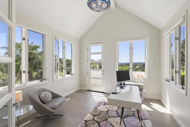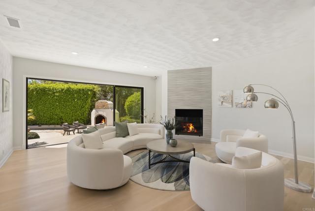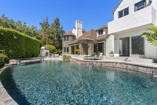 Extraordinary views are featured from this elevated site on the desirable north side of the guard-gated community of Fairbanks Ranch. This French-inspired chateau blends timeless architectural style with modern luxury. A dramatic stone-lined driveway continues through a tunnel below the estate leading to a private motor court, setting the stage for this exceptional property. The ~7,174 sq. ft. residence is designed for both comfort and entertaining. The remodeled interior features an open concept with hardwood flooring, chic lighting and sliding doors for seamless indoor-outdoor flow. Highlights include a chef’s kitchen with commercial-grade appliances, sun drenched breakfast nook, a theater with tiered seating, and an old-world wine cellar. Panoramic views complement the primary suite with 2 walk-in closets, a stunning bath, fireplace, an office, and an exercise/sitting room with vaulted ceiling. Set on 1.1 acres, the resort-style grounds offer an infinity pool, spa, outdoor fireplace, sports/pickleball court and owned whole house solar with Tesla battery. A charming, detached guest house with fireplace and sauna adds privacy and flexibility. Walking distance to all neighborhood amenities that include 75-acres of common area with walking and equestrian trails, a private lake with fishing and paddle boating, four tennis courts, four pickleball courts, clubhouse, private park with playground for children, sand volleyball and half basketball court, and a first class equestrian center. A rare opportunity to own a private hilltop retreat just minutes from world-class dining, shopping, and beaches.