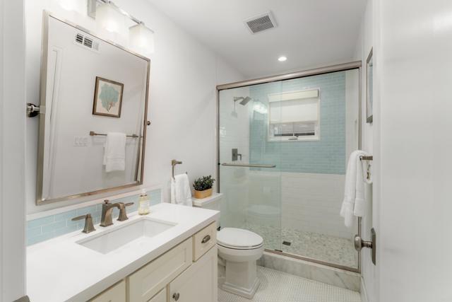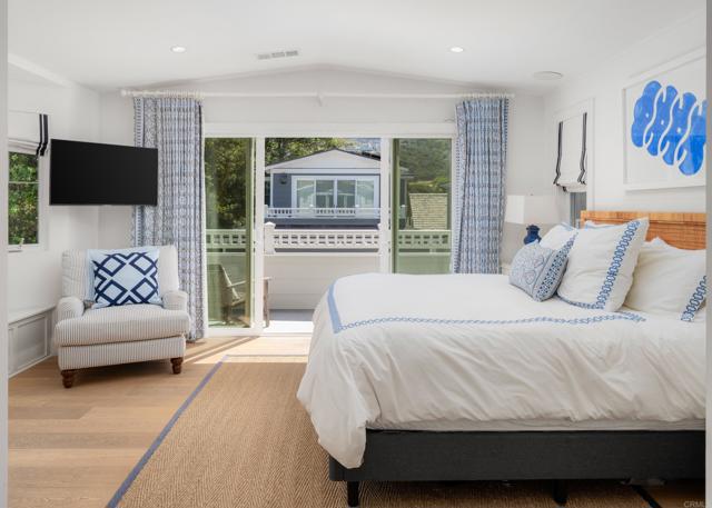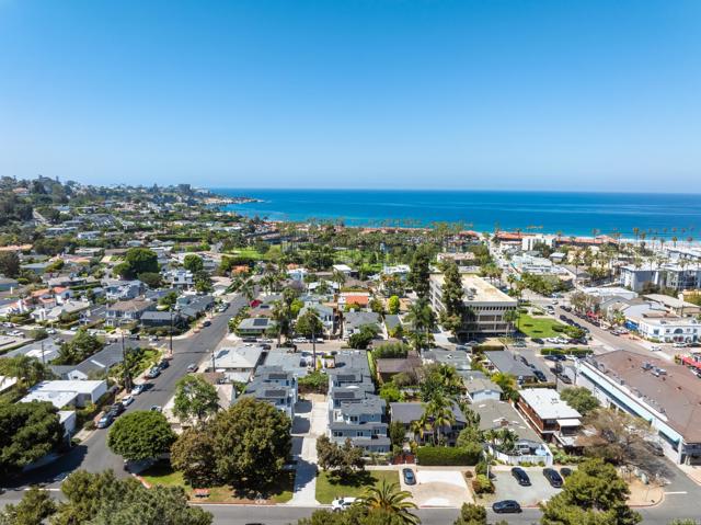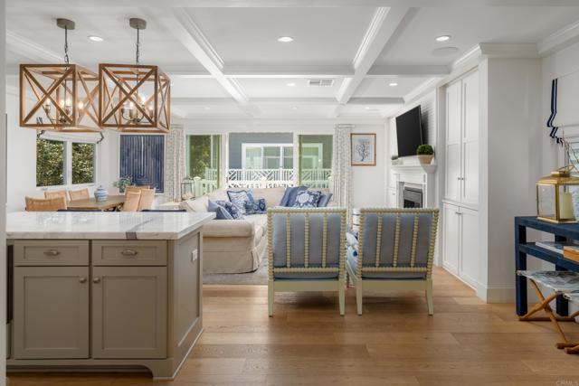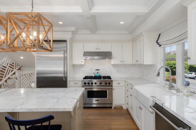 Built new in 2018 and designed by AGK Design Studio, this light & bright home offers privacy, custom detailing & an unbeatable location just blocks to sandy beaches and the Avenida de la Playa dining & retail promenade! This Nantucket-inspired detached single-family home, nestled in a private enclave of 6 charming beach houses, offers a functional multi-level layout that includes a first-floor bedroom and full bathroom ideal for guests or a home office. The open-concept main living area, featuring boxed beam ceilings, includes a gourmet kitchen, center island with bar seating, marble countertops, Viking appliances, comfortable dining area, cozy fireplace, powder bath, and private balcony. Upstairs, the primary suite is a serene retreat that includes a walk-in closet, luxurious bathroom, and its own private balcony. Additional highlights include a spacious laundry room with plenty of storage and a direct-access 2-car garage. Ideally located near the LJ Beach & Tennis Club with easy access in & out of town to enjoy the famous La Jolla Shores lifestyle!