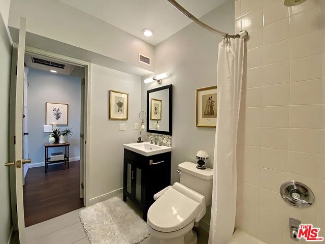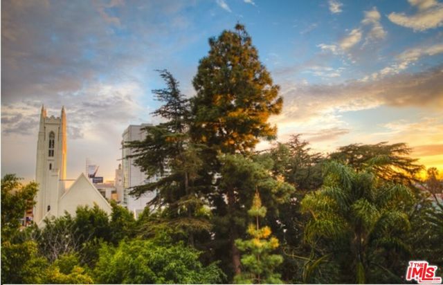 Amazing Top Floor unit with HUGE floor-to-ceiling windows and spacious balcony offering a gorgeous treetop view above Hollywood. Completely renovated with designer features, technology and appliances, including new dark floors, custom recessed lighting, frosted glass doors, in-unit washer/dryer and central A/C & Heat. Cable/internet ready and custom outlets for easy wall-mounted flat screen installation. Gorgeous center island kitchen offers custom cabinets, Caesarstone counters, custom tile splash guard, new stainless appliances, and a ceiling-mounted hood over the gas range. Large bedroom with huge mirrored door closet across from Laundry closet and bathroom. Property amenities include a swimming pool, intercom & keypad access entry and controlled-access gated parking. Property has on-site manager and monitored security cameras. Across the street from a small private (members only) dog park, and a short walk to Runyon Cyn. 1 parking space included.