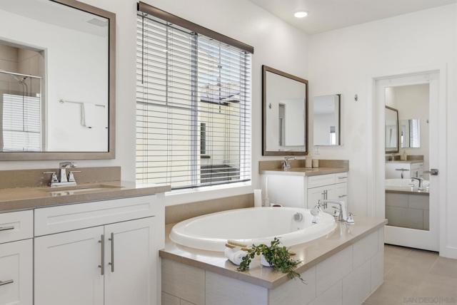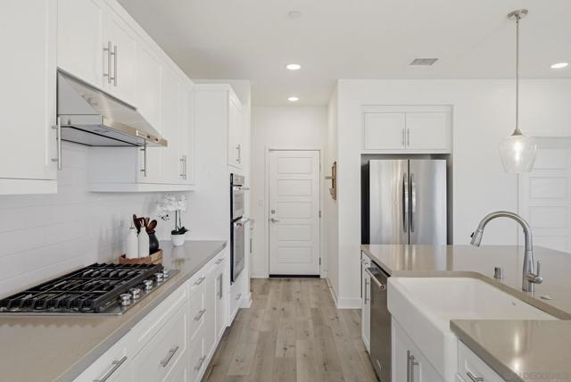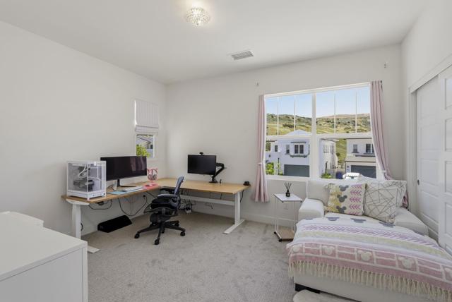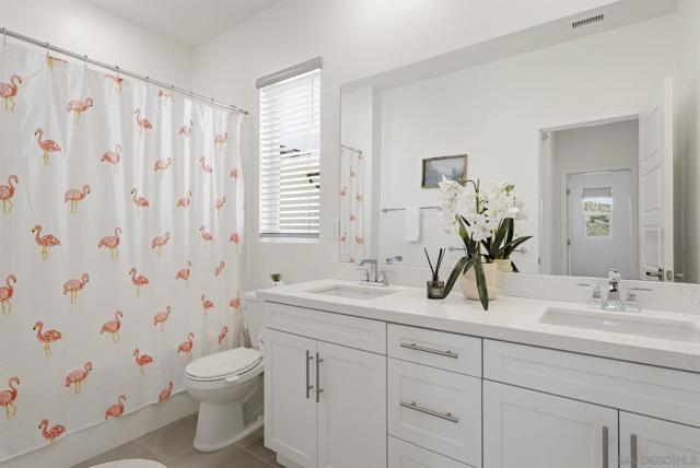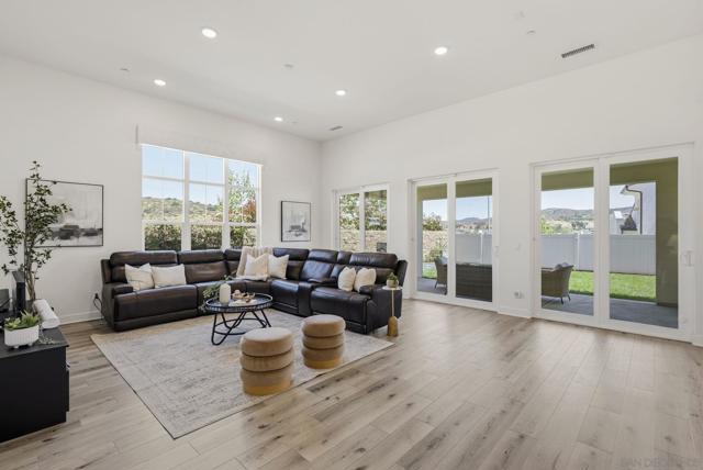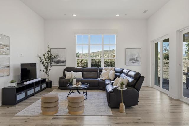 Perched on a premium corner lot with sweeping mountain views, this exceptional home is one-of-a-kind in Weston. As the only model in the community offering soaring ceilings, it creates an immediate sense of openness and light the moment you walk through the door. The great room seamlessly connects to a covered California room through multi-panel sliders, creating that ideal indoor-outdoor lifestyle Southern California is known for. At the center, the kitchen is both beautiful and functional, featuring an oversized island, abundant cabinetry, quartz countertops, stainless steel appliances, and more storage than you typically find, perfect for hosting, cooking, and gathering. The downstairs layout offers incredible flexibility with a full bedroom and ensuite bathroom, ideal for guests or multigenerational living, along with an additional bonus room that can be used as an office, playroom, or creative space. With over $100,000 in upgrades, including owned solar, luxury vinyl plank flooring, and a Tesla charging station, this home blends modern efficiency with elevated style. Located in the highly sought-after Weston community in Lake Ridge, residents enjoy access to resort-style amenities including a pool, spa, fitness center, clubhouse, and multiple parks, all while being just moments from Mission Trails, Santee Lakes, and convenient freeway access. Opportunities like this are rare—own one of Weston’s most distinctive homes. Broker and Broker Agents do not represent or guarantee the accuracy of the square footage, permitted or unpermitted space, bd/ba count, lot size/dimensions, schools, or other information concerning the conditions or features of the property. Buyer is advised to independently verify the accuracy of all information through personal inspection & with appropriate professionals to satisfy themselves.