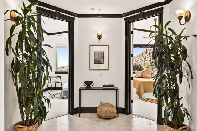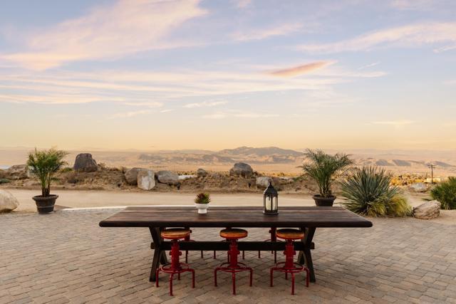 Rare Joshua Tree estate with exceptional income potential on a private 2.84-acre double lot with breathtaking views, BLM land behind the property, and private trail access directly into Joshua Tree National Park. The detached guest home has generated approximately $45,000 annually, while the main home offers estimated income potential of $200,000+ annually, creating a compelling opportunity for investors, second-home buyers, or those seeking a Luxury Desert Sanctuary. The main residence features four bedrooms and four bathrooms, with nearly all bedrooms on the main level for easy living. Upstairs, a separate retreat with view balcony offers flexible space for an office, guest area, or studio. Enter through a custom oversized wooden front door to abundant natural light, dramatic 24-foot ceilings, and distinctive architectural details that make the home feel expansive and unforgettable. The separate ADU adds even more versatility for guests, extended family, private use, or additional rental income. Outside, the property is designed for both relaxation and recreation with a beach volleyball court, in-ground trampoline, and incredible outdoor spaces to take in the surrounding desert landscape. Solar panels added in 2025. Whether you are looking for a luxury vacation rental, private retreat, second home, or investment opportunity, this exceptional property offers rare privacy, flexibility, and upside, including potential for future improvements such as an additional home, a pool, horse corral, or event venue, subject to buyer verification. A truly unforgettable offering!