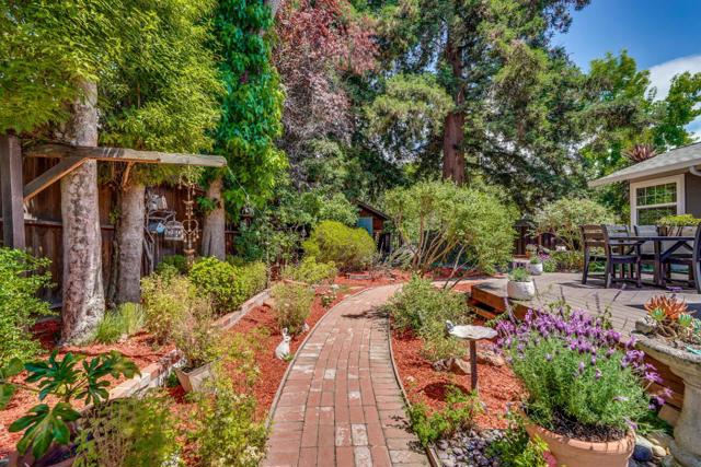 Spectacular creekside setting nestled under majestic redwoods, this serene Castro Valley property offers a rare combination of tranquility, charm, and function. Set on a generous lot, the home features three spacious wood patios and peaceful garden paths, ideal for relaxation or entertaining. Inside, the eat-in kitchen boasts Corian countertops and a gas stove, flowing into generously sized separate living, family and dining areas. The primary suite opens to a private patio through elegant French doors and includes a large bathroom, while both bathrooms offer ample space and comfort. Additional features include a 14 x 12 storage building with window and sky light with flexible potential for an office, studio, or workshop and access to highly rated Castro Valley schools. Located near the vibrant and charming downtown, this must-see property is perfect for those seeking nature, privacy, and convenience in one exceptional home.