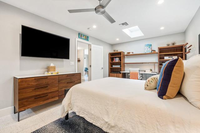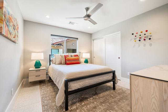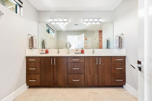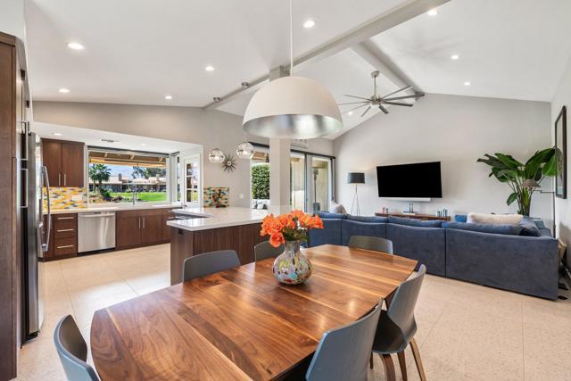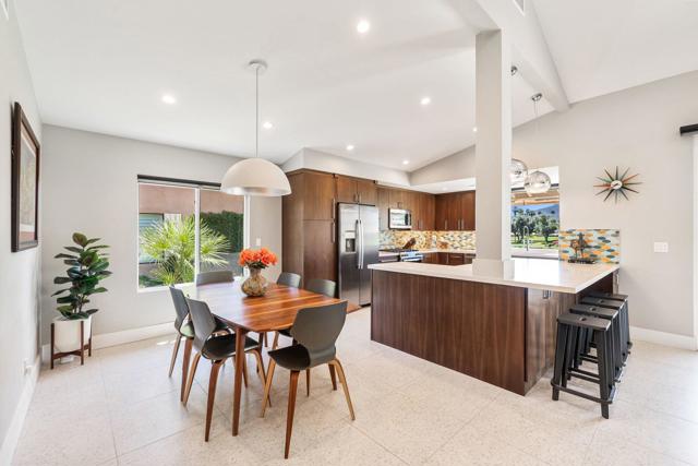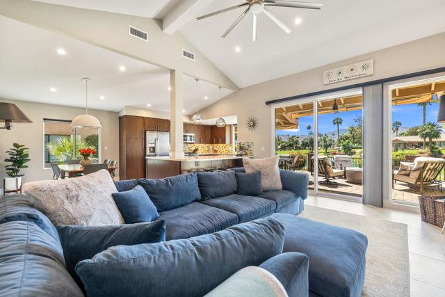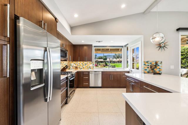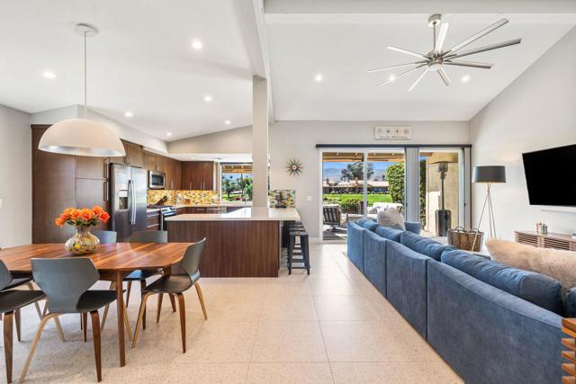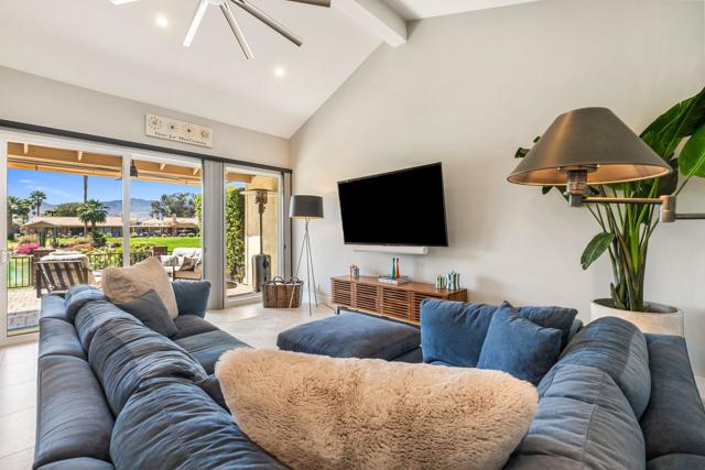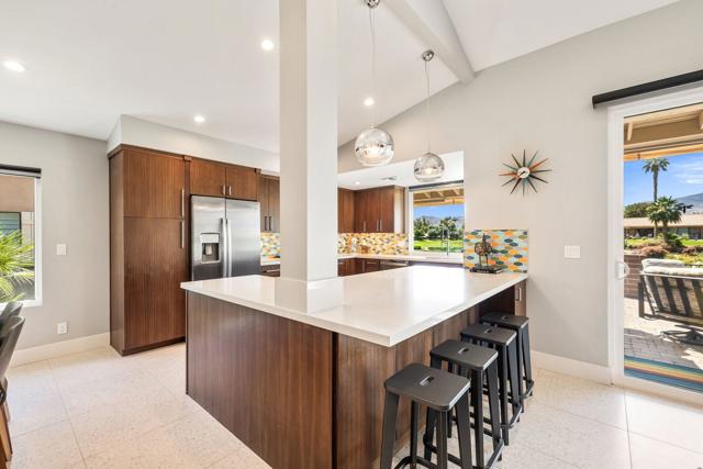 Experience elevated desert living in this fully reimagined residence, thoughtfully renovated down to the studs with no detail overlooked. This home showcases a seamless open-concept design, perfect for both everyday living and entertaining.Enjoy a south-facing panoramic mountain view, ideally situated on the Ted Robinson fairway with water views, offering a truly breathtaking backdrop from your extended patio. The outdoor space has been enhanced with pavers, new lighting, and lush desert landscaping, creating a serene setting to relax or host guests while taking in the unobstructed scenery.Inside, the home features high-end finishes throughout, including walnut veneer cabinetry with soft-close drawers, quartz countertops, and premium appliances. Designer touches such as custom lighting, Restoration Hardware fixtures, and top-of-the-line window treatments add a sophisticated, modern feel. The spacious kitchen is both functional and stylish, complete with an island and upgraded fixtures.Additional upgrades include all new electrical, overhead plumbing, HVAC system, insulation, and new windows and sliders, providing comfort, efficiency, and peace of mind.The bathrooms have been beautifully appointed with luxury fixtures and custom tile work, while large-format porcelain flooring flows seamlessly throughout the main living areas.This is a rare opportunity to own a meticulously upgraded home in a prime golf course location, where modern luxury meets stunning natural beauty. Ideally located in the heart of the Coachella Valley, Monterey Country Club offers convenient access to El Paseo's premier shopping and dining, as well as world-class golf and entertainment. Residents of Monterey Country Club enjoy a clubhouse, fitness center, 27 holes of Ted Robinson-designed golf, 6 tennis courts, 33 pickle ball courts, 4-lane bocce ball court, and 37 pools and spas.
