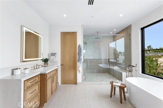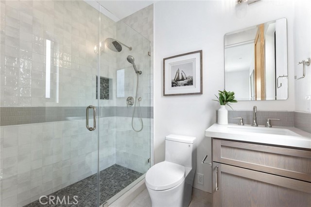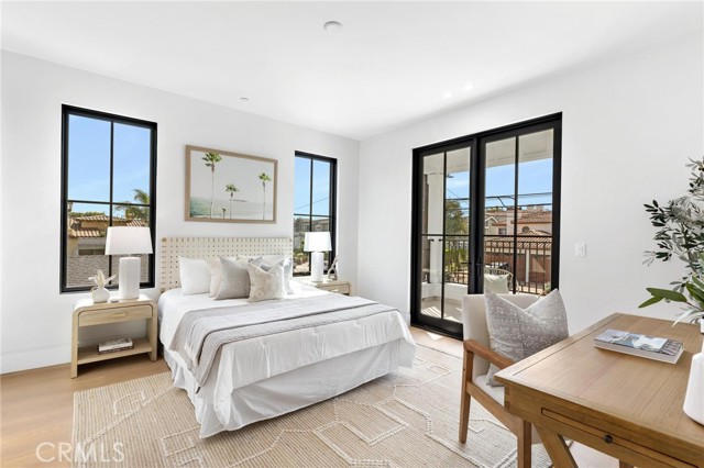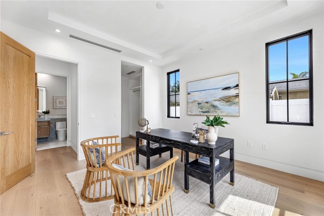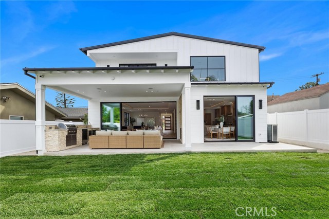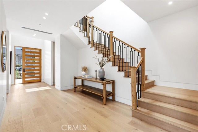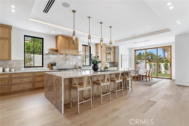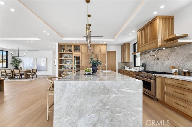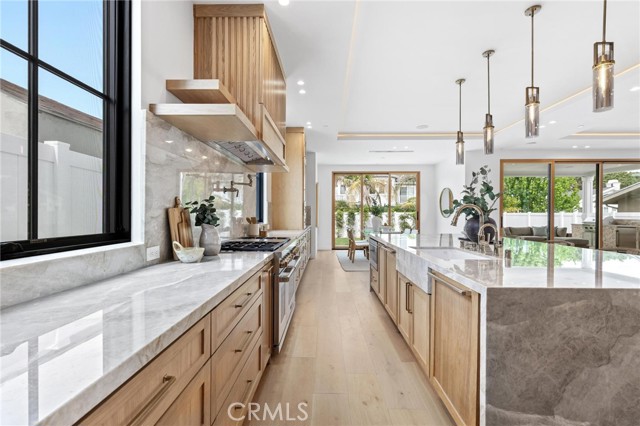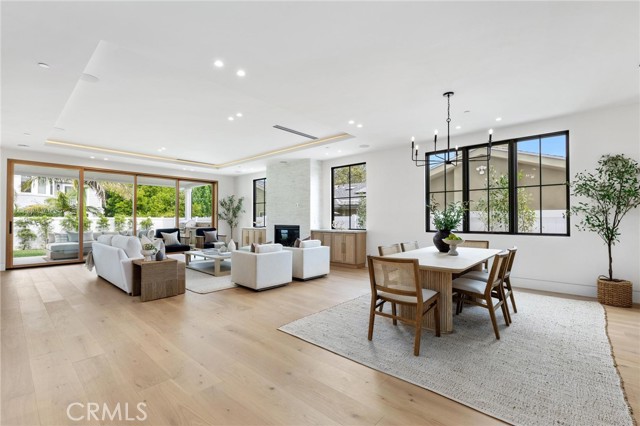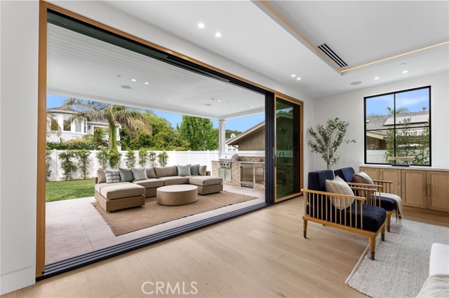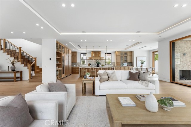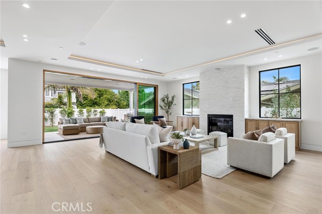 Newly built and thoughtfully designed, 1721 2nd Street blends contemporary architecture with timeless finishes, exceptional scale, and seamless indoor-outdoor living in the heart of Manhattan Beach. Entering through the oversized front door, a double-vaulted entry creates a striking first impression, with sightlines extending through the open-concept main level to the rear yard. Defined by 10-foot ceilings, expansive proportions, and walls of glass framed by oversized Marvin windows, the home is filled with natural light and a strong sense of connection throughout. A formal dining room offers an elegant setting for large-scale entertaining, flowing into the kitchen and main living areas. At the center of the home, the kitchen is anchored by a 10-foot Perla Venata quartzite island and features custom natural oak cabinetry and a full suite of premium appliances, including a 48-inch Wolf range, Sub-Zero refrigeration, full-height wine storage, and dual dishwashers. A secondary dining area opens directly to the backyard through oversized LaCantina doors. The main living room features a statement fireplace, custom built-ins, and seamless access to the outdoors. A 400-square-foot covered outdoor living room with fireplace, along with a built-in BBQ kitchen, extends the home’s footprint and enhances year-round livability. The main level also includes a versatile ensuite bedroom, powder room, and custom mudroom with direct access to the oversized three-car garage. Upstairs, three secondary bedrooms each offer ensuite baths and ample closet space. An oversized loft provides flexible living space, while the primary suite serves as a private retreat with a fireplace, terrace, and spa-like bath featuring a soaking tub, dual vanities, and a custom walk-in closet. Wide-plank white oak flooring, custom oak doors, curated stonework, and Perla Venata quartzite surfaces define the interiors, complemented by Brazo and Delta fixtures. A fully integrated smart home system with audio, lighting, and security, along with solar panels and fire sprinklers, enhances modern living. Defined by its open-concept layout and effortless indoor-outdoor connection, 1721 2nd Street offers a rare blend of modern sophistication and elevated coastal living in one of Manhattan Beach’s most sought-after locations.