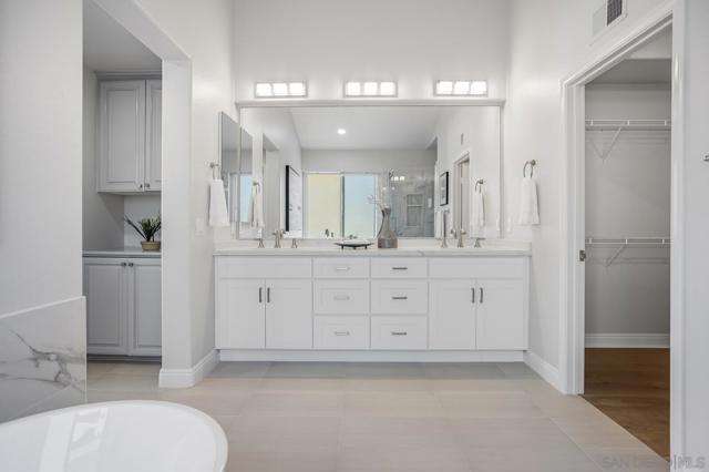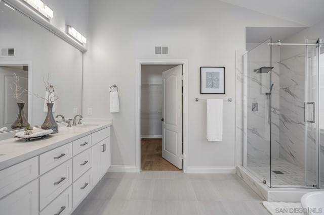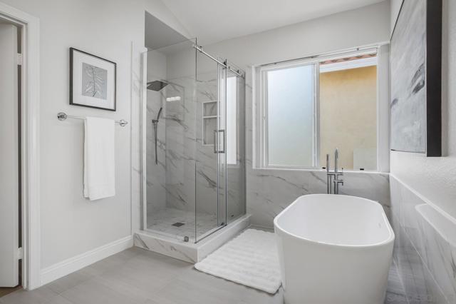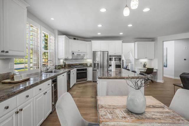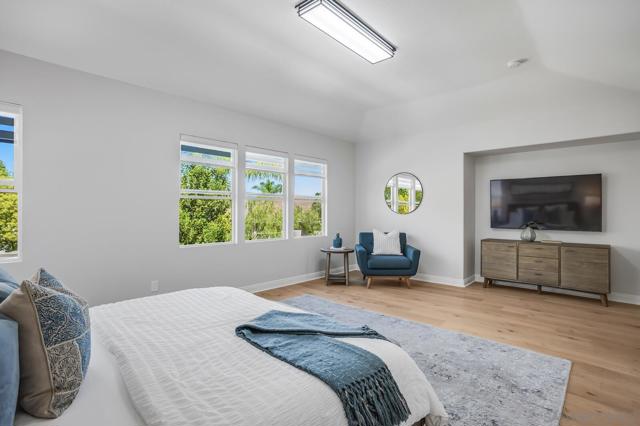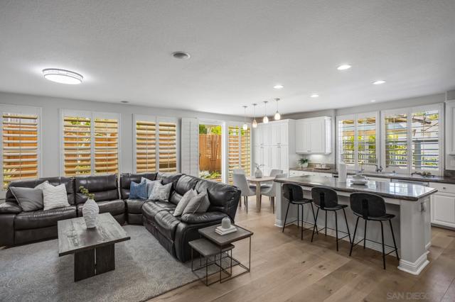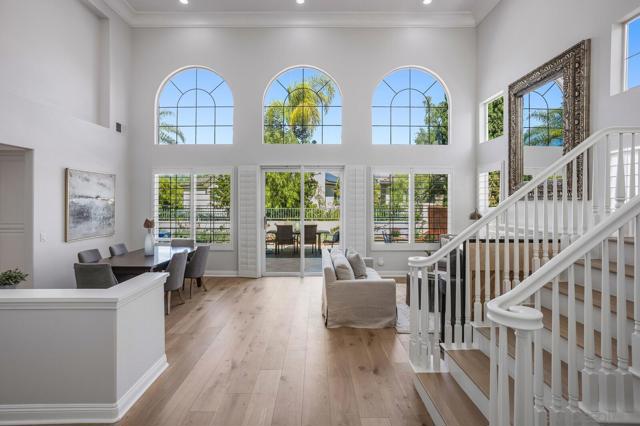 Indulge in modern luxury living in this impeccably remodeled home walkable to Ashley Falls Elementary. Flooded with natural light through clerestory windows. Open-plan white kitchen features an expansive culinary island and abundant cabinetry. Elegant new light wide-plank hardwood floors throughout. Plantation shutters down, zebra roller shades up. Stylish updated bathrooms. Fig, Apricot, Plum, Peach, Loquat & Apple Trees. Award-winning schools, Ashley Falls Park, Pristine Beaches, and so much more. Step into the dramatic foyer with new hardwood floors that lead you into the magnificent two-story vaulted Great Room with views thru to the private backyard oasis. To the left awaits the stunning expanded chef’s white kitchen; huge prep island, counters galore plus abundant cupboards. Stainless Steel appliances: commercial-grade exhaust fan and bev frig - truly a chef’s dream. Stone Fireplace in both Great Rooms. Downstairs Bed with Ensuite plus a stylish Powder Room and full Utility/Laundry Room complete the first floor. Up the grand staircase to the adorable sitting room and stellar views. French Doors lead to the spacious office on the left and then on to the Bedroom wing. Luxurious primary bedroom at the back with beckoning retreat, fully remodeled 5-piece ensuite and huge Walk-in closet. Two generous secondary beds share an updated 4-piece hall bath. Step outside to enjoy outdoor living at its finest: under the airy Pergola, around the Firepit seating, or enjoying the oversized patio. Award-winning schools, Ashley Falls Park, Pristine Beaches, Fairgrounds, Del Mar Highlands, One Paseo & Flower Hill Mall offer convenience and an exceptional lifestyle.