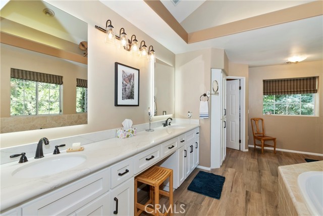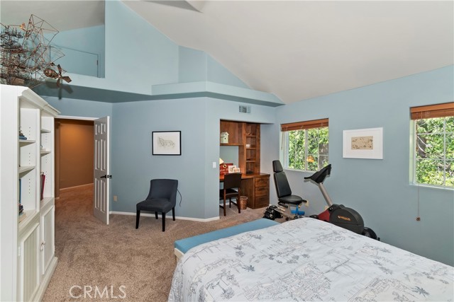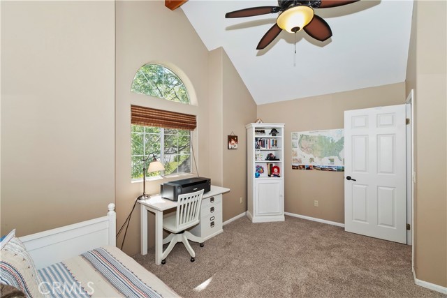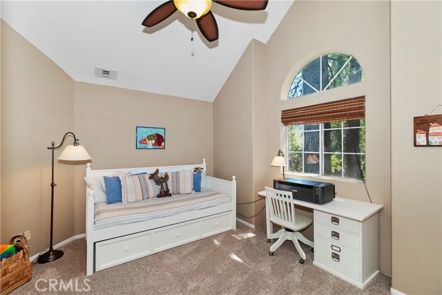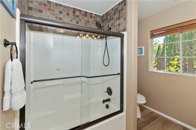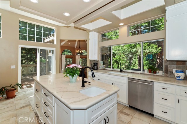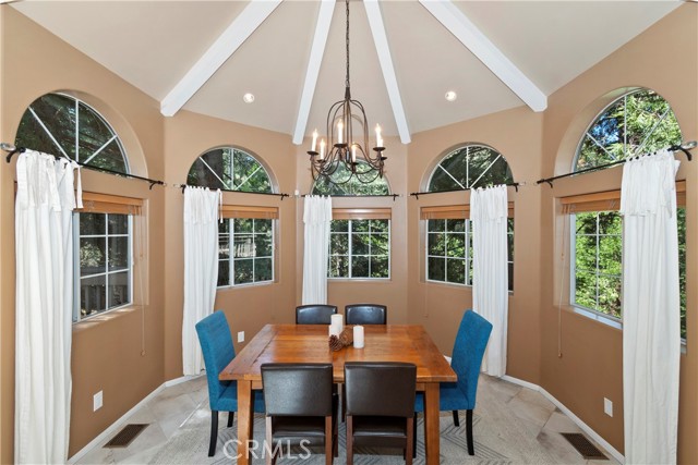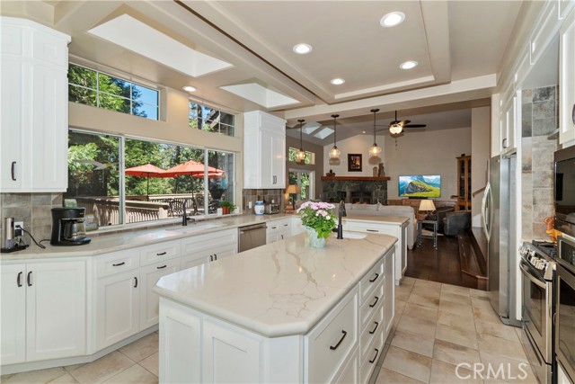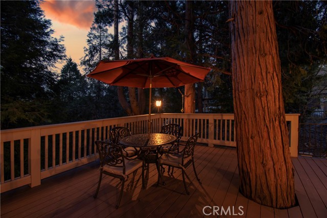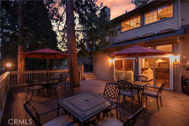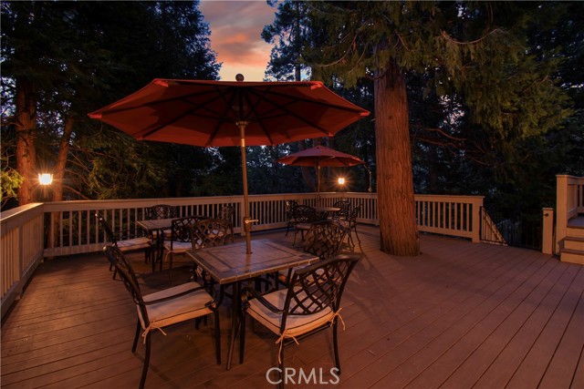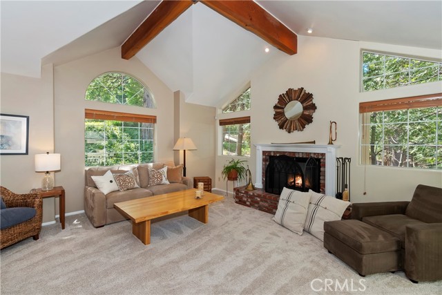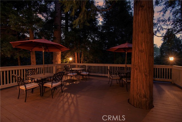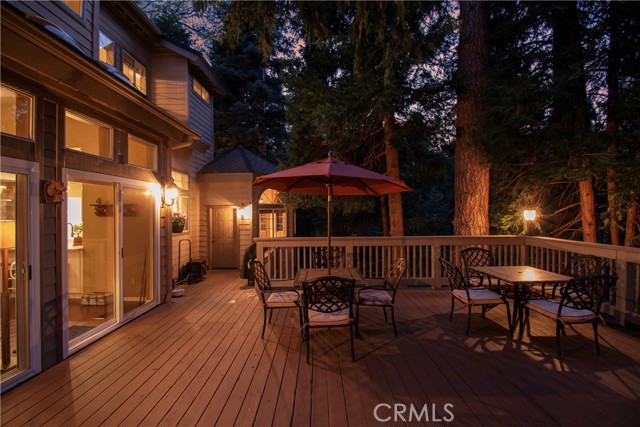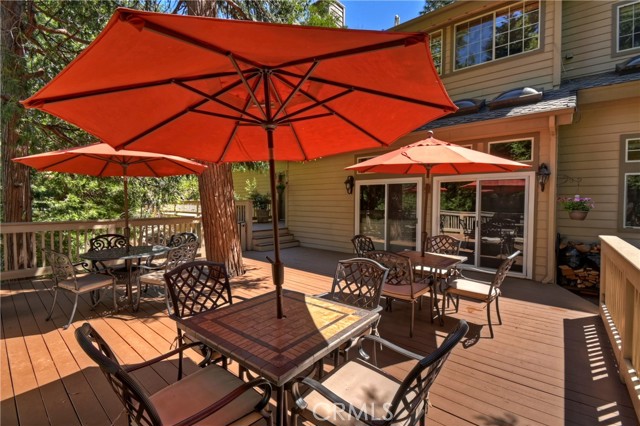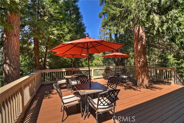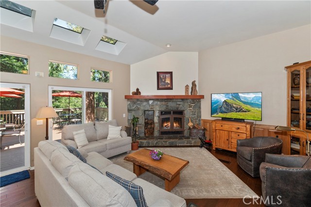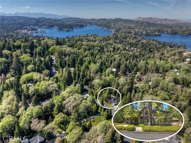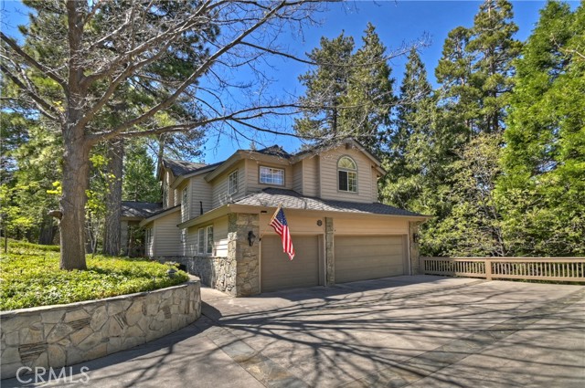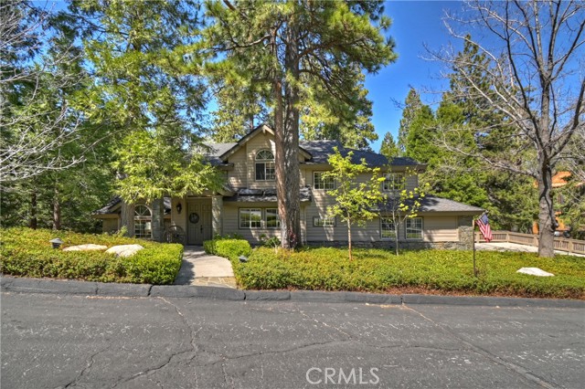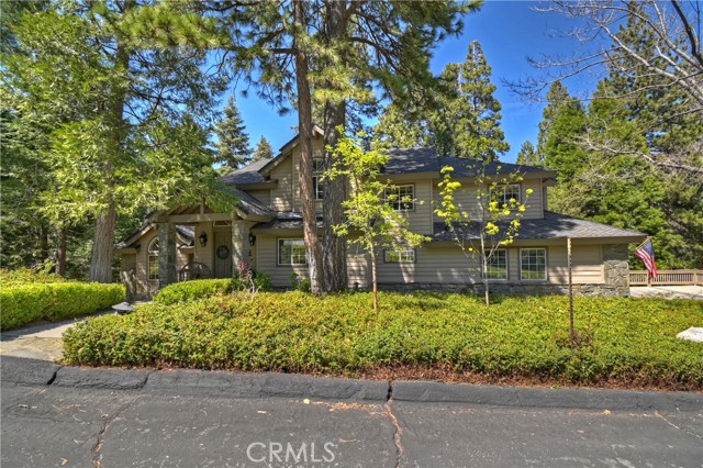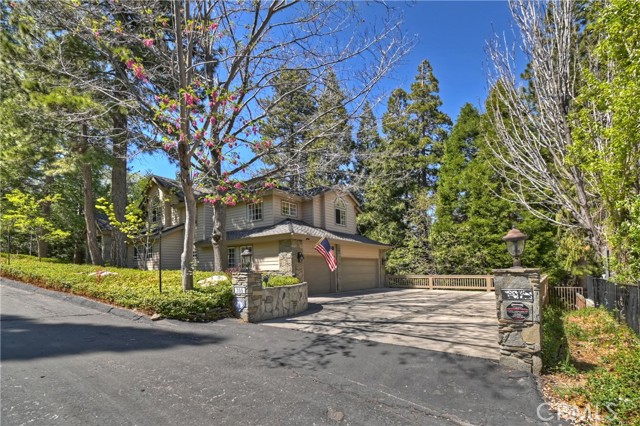 Lovely home in the gated community of Cedar Ridge Estates on nearly an acre of land!!! Spacious home with 3699 sq. ft. featuring 4 bedrooms and 3 baths with a flexible layout. The property is nicely landscaped and fully fenced, with a level driveway providing easy access from the street to the 3-car garage. Did we mention the ample off-street parking! Stone accents showcase the pillars and walkways taking you to the covered front porch. Big and open from the moment you step inside. The main level includes a formal living room with gas fireplace along with a bedroom that works well as a guest room or private office. The upgraded kitchen is designed for both everyday use and entertaining. Features include quartz countertops, a large island with secondary sink, walk-in pantry, custom soft-close cabinetry, two ovens and a 5-burner gas range. Large, sunny window over the sink. A long breakfast bar connects the kitchen and family room featuring a wood-burning fireplace with direct access to rear deck. A formal dining room sits just off the kitchen and also opens to the deck. An open, light-filled staircase leads to the upper level with two guest bedrooms, a full bath, and the spacious primary suite. The large guest room has a built-in desk w/bookcases; the closet is currently set up as an art studio, offering great light and shelving to conveniently store your supplies. The primary bedroom includes a large walk-in closet and the dual-sided gas fireplace is shared with the bathroom. Luxury bath features a jetted soaking tub, walk-in shower, double sinks and lighted vanity mirrors!! It’s a place of comfort for sure. Outdoor spaces are a highlight with the large deck overlooking a natural forest and seasonal stream…… complete with accent lighting for evening use. Easy to gather without feeling crowded. If natural light is important, this home has multiple skylights. Additional enhancements include 2 A/C’s, 2 FAU’s, whole house self-activated gas generator, central vacuum system… yes it works….. small fenced dog run. Built-ins and cabinets in garage. Well maintained showing pride of ownership. This area is truly a step outside the norm. A gated community with large stately homes on private lots with lush green landscaping along with a mature mountain forest ~ close to the lake and minutes to historic Lake Arrowhead Village, yet a sense of privacy and serenity exists here. Boat slip in MBM #4 Slip 7 and boat available for additional costs.