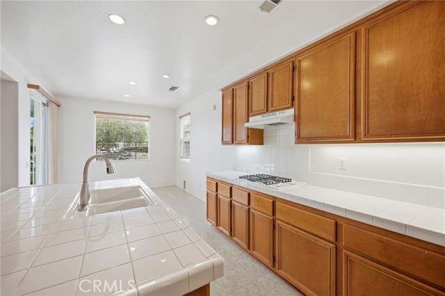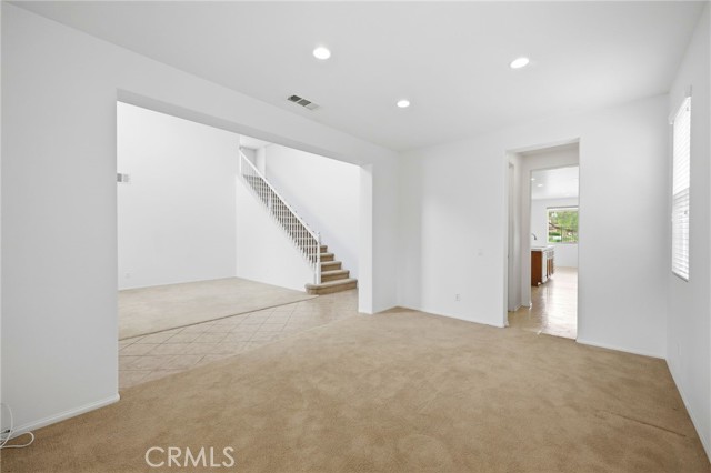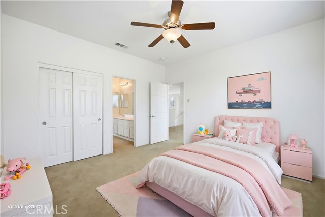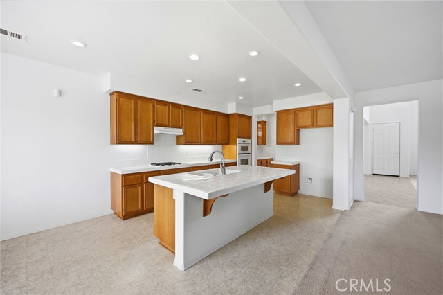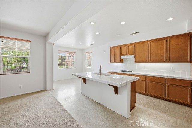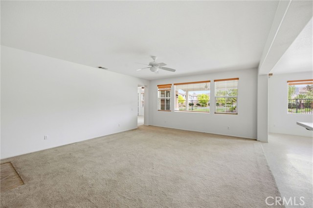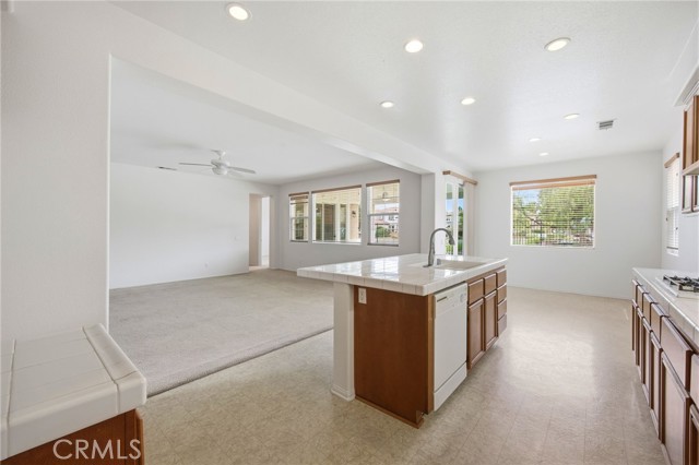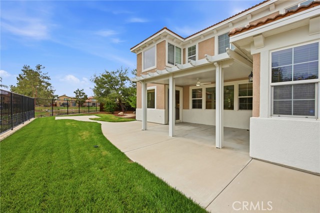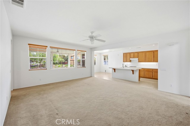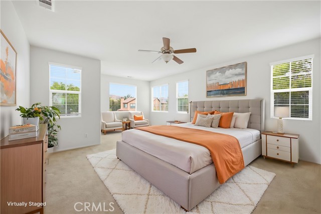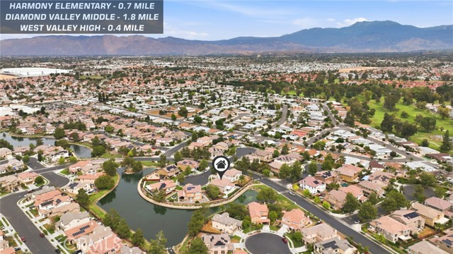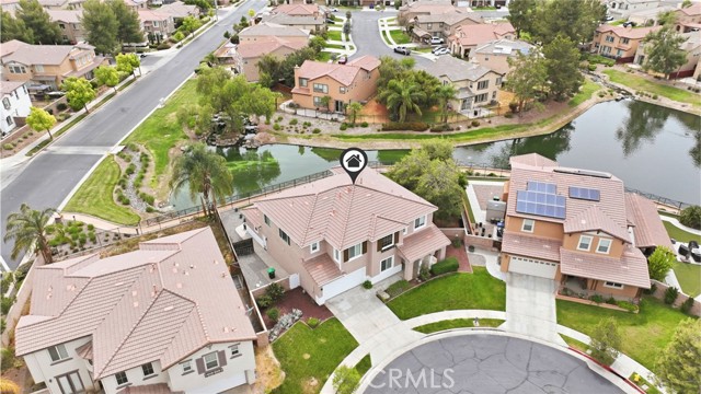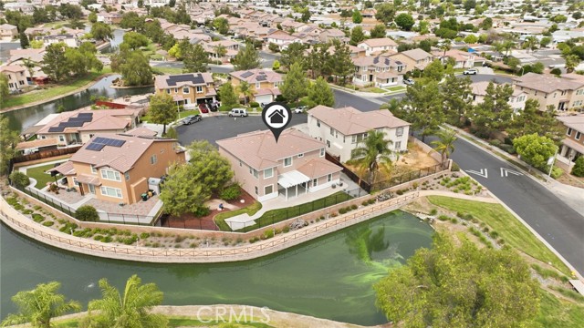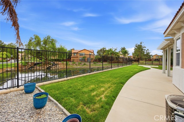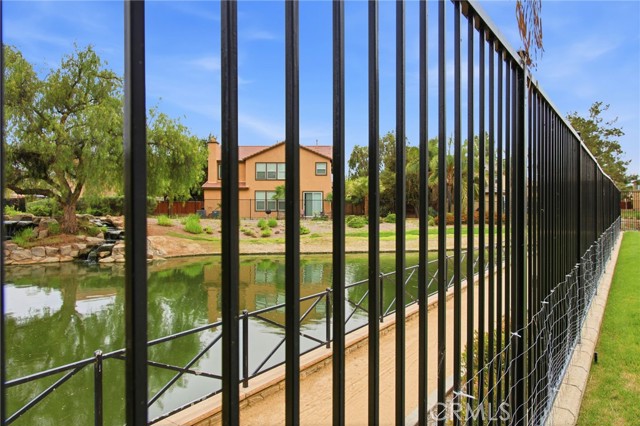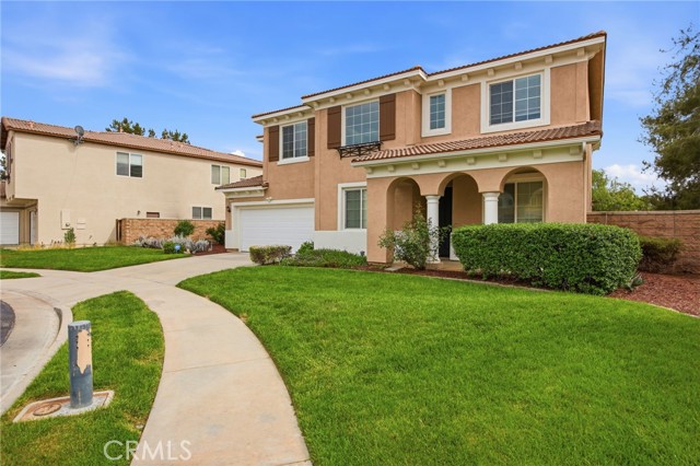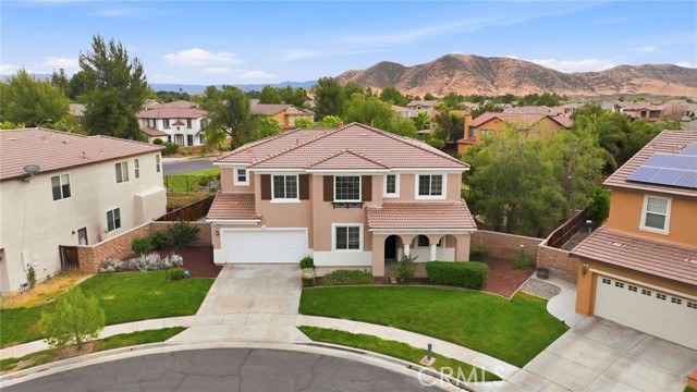 Located in the gated Willowalk Community of Hemet, this well-maintained 5-bedroom, 4.5-bath home sits on a quiet cul-de-sac and offers approximately 3,511 sq ft of well-designed living space on a 10,019 sq ft lot with a 3-car tandem garage. The open floor plan features a formal living room, formal dining area, and an expansive family room with fireplace that flows into a spacious kitchen with ample cabinetry and counter space, a large center island, butler’s pantry, and breakfast nook overlooking the backyard waterfall. The interior has been refreshed with new paint throughout, giving the home a clean, move-in-ready feel. The main level includes a private bedroom suite ideal for guests or multi-generational living, along with a large individual laundry room with built-in counters and utility sink. Upstairs offers four additional bedrooms, three full bathrooms, and a spacious loft with built-in desk that can serve as a second living area, TV room, or game room. The primary suite features a retreat area and dual closets, while the primary bathroom includes dual vanities, a soaking tub, and separate shower. Two secondary bedrooms share a Jack and Jill bathroom with dual vanities. The backyard is fully improved with a covered patio, concrete hardscape, mature landscaping, and fruit trees, all positioned to capture lake and waterfall views, creating a private setting for both entertaining and everyday living. Residents enjoy resort-style amenities including a pool, clubhouse, basketball court, playground, and scenic walking trails with lakes and water features, making this a standout opportunity in one of Hemet’s premier gated communities.