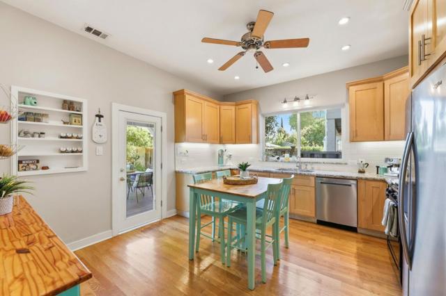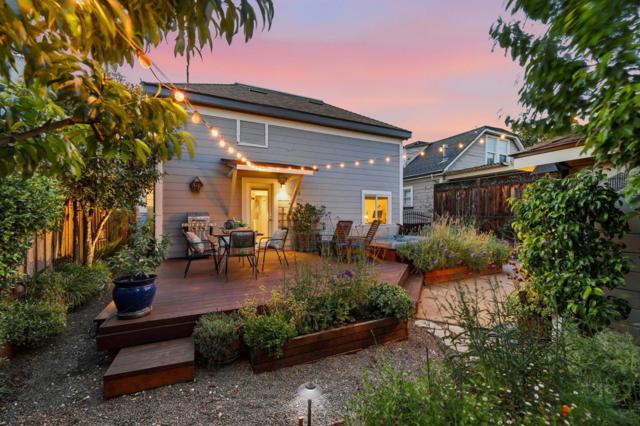 Welcome to 1274 Magnolia Ave, a charming 3-bedroom, 1-bath home where timeless character meets everyday comfort. Filled with natural light, this inviting home features a skylight tunnel in the dining area and a gas fireplace with built-in bookshelves. The living room is highlighted by a bay window with etched glass, an elegant nod to the homes early 1900s design. Privacy windows and recessed lighting enhance both comfort and style throughout. The kitchen offers soaring ceilings, maple shaker cabinetry, granite countertops with tile backsplash, and a gas range with pot filler. Rich 4 oak hardwood floors and beautifully matched bamboo flooring create a seamless flow. A French door opens to a private backyard retreat with a raised deck, hot tub, and a vibrant orchard featuring peach, cherry, lemon, and pear trees, along with raised beds, roses, and lavender. A high-ceiling attic offers exciting potential for future expansion, including the possibility of creating a second story with additional bedrooms and bathrooms (buyer to verify). Detached 2-car garage with laundry and storage offers ADU potential (buyer to verify). Ideally located near coffee shops, dining, shopping, and major commute routes.