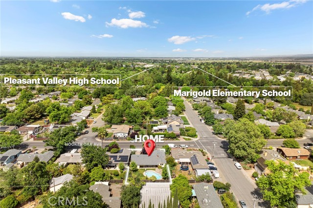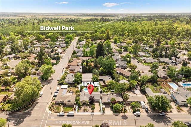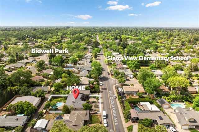 Great opportunity to own and personalize a classic 1959 Hignell-built home with a pool! Pedestrian distance from Lower Bidwell Park, Hooker Oak Park, and Sierra View Elementary. This 3 bedroom, 2 bathroom, 1,348 sq ft home on a .24 acre lot has solid bones and some key updates including a new roof in 2024 as well as new HVAC ducting and R-30 attic insulation in 2026. Original hardwood floors throughout. The kitchen features a gas range and solid surface counters. The whole house fan helps keep utility costs manageable through the Chico summers. A gorgeous in ground pool is the centerpiece of the backyard and it's complimented by a large covered porch. Bike paths, hiking trails, and the beauty of Bidwell Park are just a couple blocks away for those who love to be outdoors.