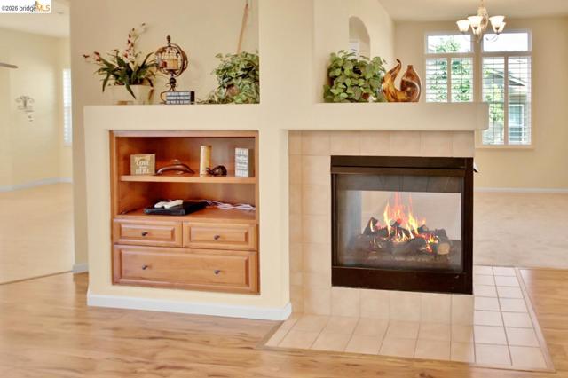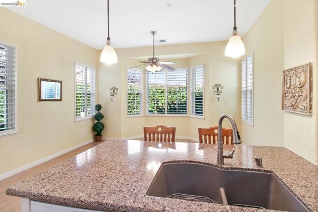 Discover the best of Summerset 3 living in this delightful home! A gated front courtyard and beautiful glass inlaid entry door create a warm, stylish welcome. The updated kitchen features slab granite counters, a striking tile backsplash, white cabinetry, and elegant pendant lighting over the bar seating area. Refrigerator included. Interior design & décor highlights include two bay windows, a two way gas fireplace, arched doorways, plantation shutters, mirrored closet doors, custom paint, six ceiling fan/light fixtures, crown moulding, a Phantom screen door, vertical blinds, laminate flooring, brand new carpet & more. The double door den offers great versatility—ideal as an office, hobby room, or potential third bedroom. Imagine relaxing or entertaining in the private backyard with a covered patio, two small lawn areas, tall hedges, and many colorful rose bushes. The laundry room includes a sink, cabinetry, and washer & dryer. An oversized two car garage adds convenience with built in shelving and a pull down ladder to a spacious storage loft. Enjoy the Summerset golf course community lifestyle with gated entrances, a large clubhouse, pool and spa, billiards, library, fitness center, bocce, tennis, and more. Join community events or simply relax and enjoy life at your own pace.