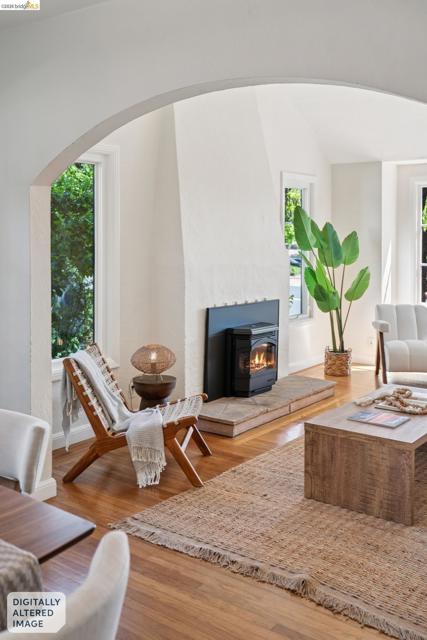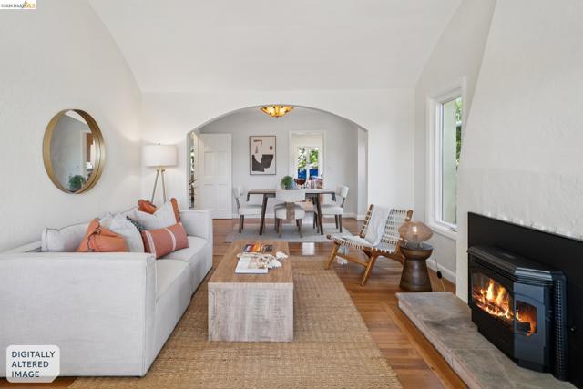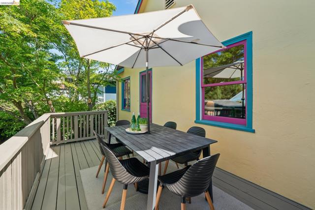Vibrant 1425 Virginia Street: A storybook bungalow blending classic charm, flexibility and opportunity in North Berkeley. This well-kept, two bed, one bath home offers enchanting living filled with natural light, warm character and thoughtful updates. In the living room a stone hearth anchors the fireplace stove with a tapered chimney to the barrel vaulted ceiling over oak floors. A seamless opening to the formal dining room and large bay windows ensure these entertaining rooms are always ready for guests. Past the hall linen storage and tiled floral accents of the period bathroom there are two well-proportioned bedrooms with windowed closets. The kitchen’s contemporary layout includes laundry and decorative blue glass at the eat-in nook window. Open the back patio door and wooden screen to a spacious deck, overlooking a fenced backyard surrounded by lush greenery and a generous raised bed for gardening. The detached studio presents an ideal opportunity for a home office, creative space, potential ADU, or your own “Cottage Industry” project. Additional Features include: Seismic improvements, Attic insulation, Solar (owned), EV Charger, Double pane windows (partial) & HES 10. Near N. Berkeley BART, Bike path, convenient transit. Moments to Cafes, Shops, Parks & Monterey Market.