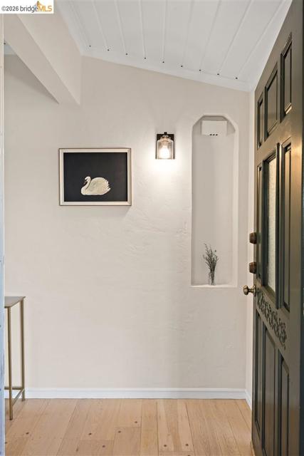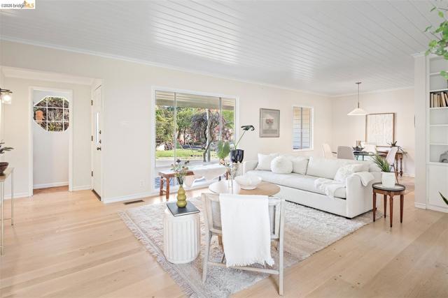 Welcome to 7307 Hotchkiss Ave, where convenience meets tranquility. Set on a desirable corner lot, this charming 3 bedroom, 2 bathroom home offers a rare blend of natural beauty and modern comfort. A majestic mature oak tree and nearby creek create a serene, park-like setting, providing a peaceful retreat just moments from everyday amenities. Bathed in natural light, the primarily single-level layout features refinished hardwood floors and an inviting living space anchored by a classic brick fireplace with built-in cabinetry. The updated kitchen is both stylish and functional, ideal for everyday living and effortless entertaining. The flexible floor plan includes a lower-level bedroom and full bathroom, perfect for guests, a home office, or extended living. Thoughtful upgrades such as a brand-new HVAC system and compliant sewer lateral add comfort and peace of mind. Enjoy seamless indoor-outdoor living with a deck off the living room, a newly fenced lounge and play area, and a private side-yard patio, ideal for relaxing or hosting gatherings beneath the shade of the oak canopy. Ideally located with easy access to El Cerrito Plaza BART, HWY 580 and 80, El Cerrito HS, Costco, and vibrant shops and restaurants, this move-in ready home offers the best of El Cerrito living!