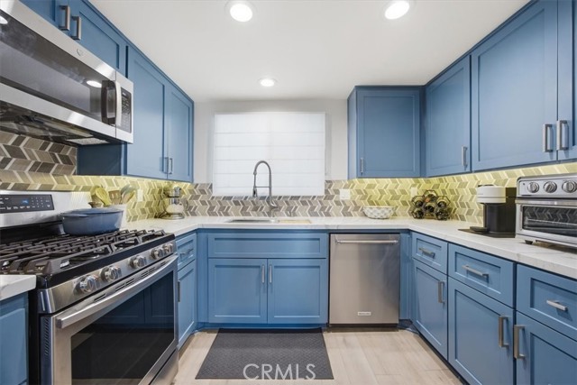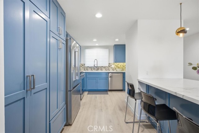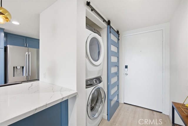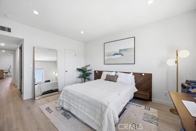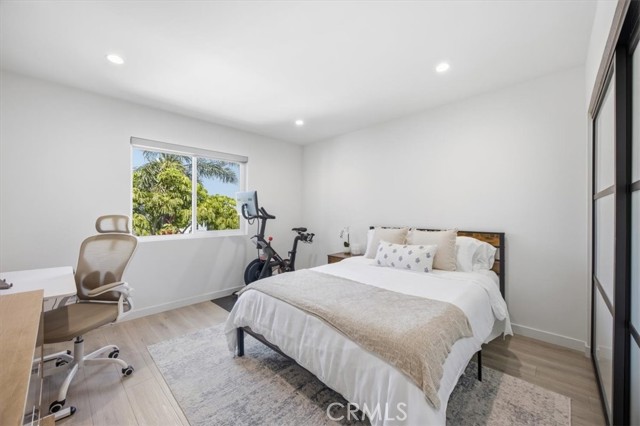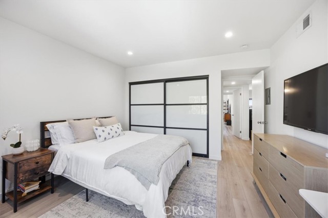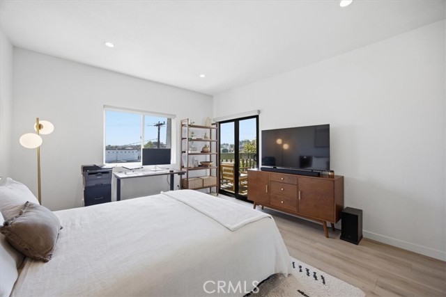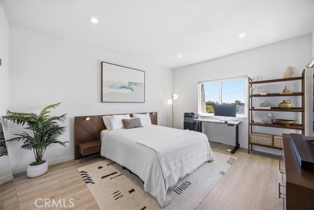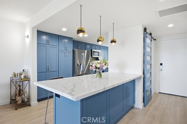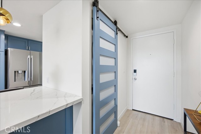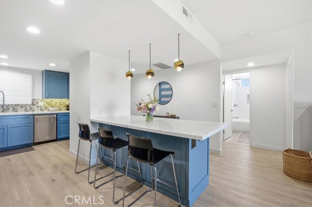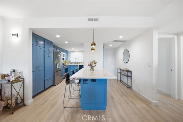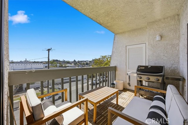 Step inside this rarely available top-floor, end-unit residence, ideally situated in the heart of El Segundo. With a desirable single-level layout and abundant natural light from its south-facing exposure, the home feels bright, airy, and welcoming from the moment you enter. The entry hallway leads into a thoughtfully reimagined living space where the kitchen, dining, and living areas flow together seamlessly in an open, cohesive layout. At the center is a quartz-topped peninsula with generous built-in storage, creating both a natural gathering space and a highly functional focal point. Notably, this is the only unit in the complex with a redesigned open-concept kitchen, making it a truly unique offering within the community. Designed with both style and practicality in mind, the kitchen features refreshed cabinetry, quartz countertops, cut stone backsplash, and newer appliances. Wide-plank flooring extends throughout the home, complemented by smooth walls, updated windows and patio doors, and custom window coverings for a clean, cohesive finish. Sunlight fills the living room, where sliding doors lead to a private balcony overlooking the neighborhood, an ideal setting for morning coffee or evening unwinding. The space is also enhanced by in-wall wiring for a 5.1 surround sound system, along with upgraded Cat6 connectivity for high-speed, hardwired internet and seamless streaming. Down the hall, two well-appointed bedrooms offer comfort and privacy, including a spacious primary suite with a walk-in closet, en-suite bath, and direct access to the balcony. Additional thoughtful upgrades include central A/C, recessed lighting connected to a Lutron smart system for effortless app-based control, and an in-unit stacked washer and dryer tucked behind a stylish barn door. Additional highlights include two side-by-side parking spaces in a gated subterranean garage with security cameras, a private storage area, and dedicated bike storage. The well-maintained community offers a heated pool enjoyed from spring through fall, a spa, picnic area, and elevator access, all just moments from Library Park, Richmond Elementary, Main Street’s popular dining and shops, the beach, and major freeways. Altogether, this home offers a rare combination of comfort, thoughtful upgrades, and coastal convenience in one of El Segundo’s most desirable locations.