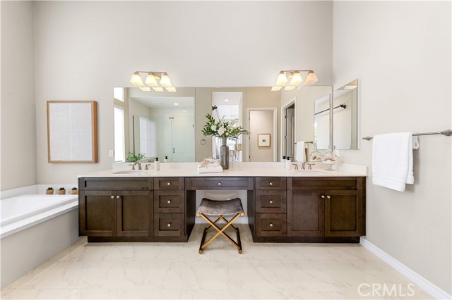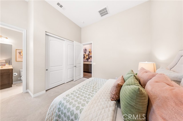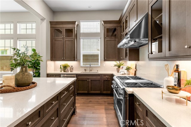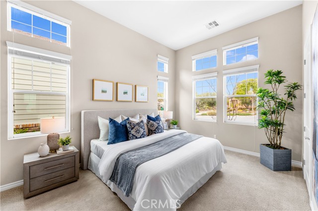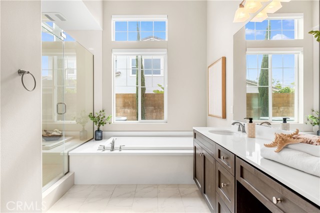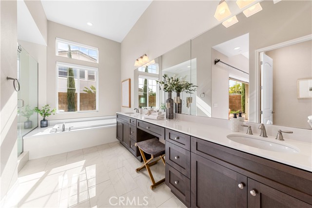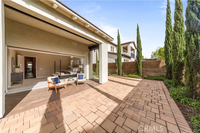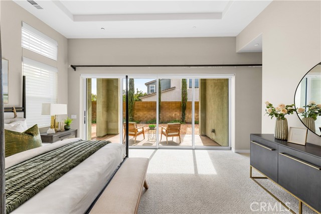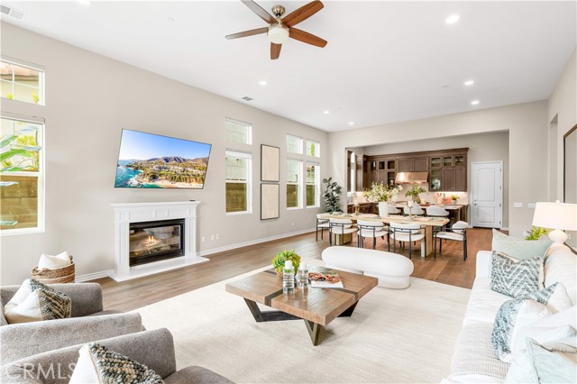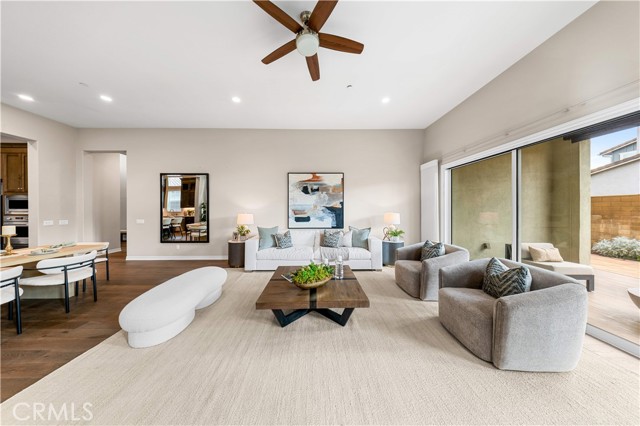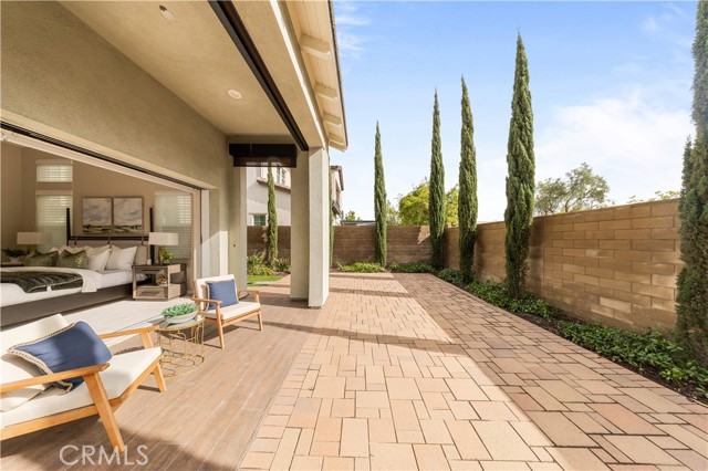 Rarely available single-story home nestled on a quiet cul-de-sac in the heart of Great Park. Situated on an oversized lot of nearly 7,500 sq.ft., this south-facing residence offers abundant natural light and exceptional privacy. Featuring soaring 12-foot ceilings and four ensuite bedrooms, this home showcases an open, seamless floor plan with high-end finishes throughout. Lightly lived in and meticulously maintained, it shows like a brand-new home. Beyond the welcoming front porch is a formal entry that leads to the expansive main living area. The kitchen, dining, and living spaces are thoughtfully connected and open to the California Room through large sliding glass doors, creating effortless indoor-outdoor living. The chef’s kitchen is appointed with premium appliances, rich wood cabinetry, quartz countertops, and abundant windows that enhance the bright and airy ambiance. The living room features a cozy fireplace and generous natural light. The private bedroom wing is located on the opposite side of the home, offering four spacious ensuite bedrooms, including two primary suites—one at the front and one at the rear. The grand primary suite includes its own California Room, a luxurious spa-inspired bathroom, and ample closet space. Upgraded flooring includes wood throughout most of the home, elegant tile in the bathrooms, and plush carpet in the bedrooms. Conveniently located near Bosque Trail, the upcoming Canopy shopping center, Beacon Park School, and community pools and parks. Residents enjoy access to all of Great Park’s exceptional amenities, including parks, pools, scenic trails, and community facilities, offering a vibrant and convenient lifestyle. Truly a rare opportunity to own a one-of-a-kind single-level home in one of Irvine’s most desirable neighborhoods.