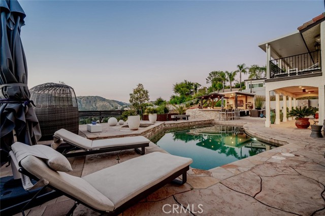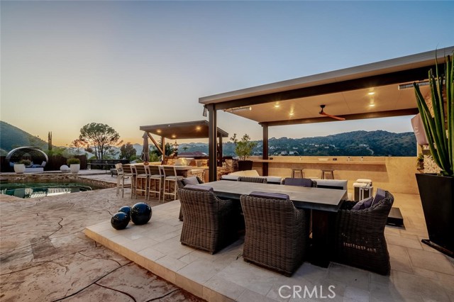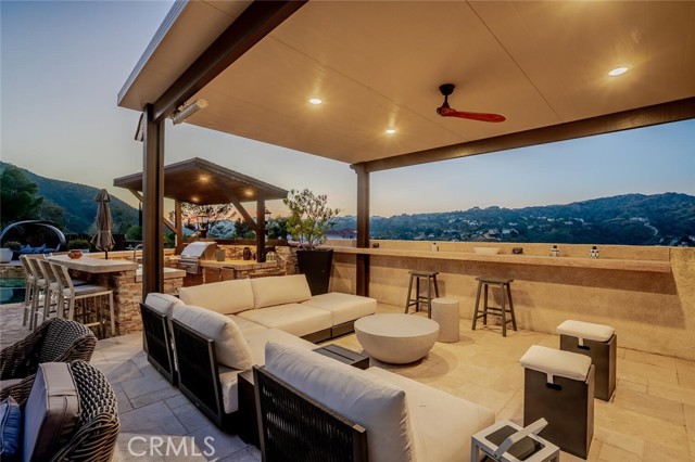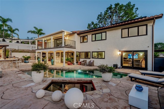 Designed for those who live exceptionally well, this Bell Canyon residence reflects a lifestyle where connection, comfort, and experience take precedence. From the moment of arrival, the intention is clear: open sightlines, effortless flow, and a seamless relationship between indoor and outdoor living create an environment that naturally invites gathering, relaxation, and celebration. Panoramic views serve as a constant backdrop, transforming everyday moments into something extraordinary. Expansive walls of glass dissolve boundaries, allowing light-filled interiors to extend outward to the horizon. Updated finishes and a reimagined floorplan ensure the home feels current, functional, and quietly refined, while integrated smart home features—including intuitive lighting, climate, and security systems—bring modern efficiency to every corner of the property. At the heart of the home is a fully integrated indoor-outdoor experience. Large openings lead to a resort-style backyard where an inviting pool serves as the focal point for recreation. A thoughtfully designed outdoor kitchen and covered living area—complete with heating and a mounted television—offer a true extension of the home, perfectly suited for vibrant evenings under the stars. Entertaining is further elevated by a full sit-down bar with a garage-style pass-through window, encouraging fluid interaction between interior and exterior spaces. Beyond the gates, life within Bell Canyon offers a rare sense of connection. This guard-gated enclave provides a grounded rhythm of living with access to scenic trail systems, tennis and pickleball courts, an equestrian center, and a private fitness facility. Served by the highly-regarded Las Virgenes Unified School District, the community offers a perfect balance of privacy and convenience, staying within easy reach of premier private schools, dining, and shopping. This residence is not simply a place to live, but a setting where home and community work in harmony to create a lifestyle defined by luxury, connection, and enduring appeal.