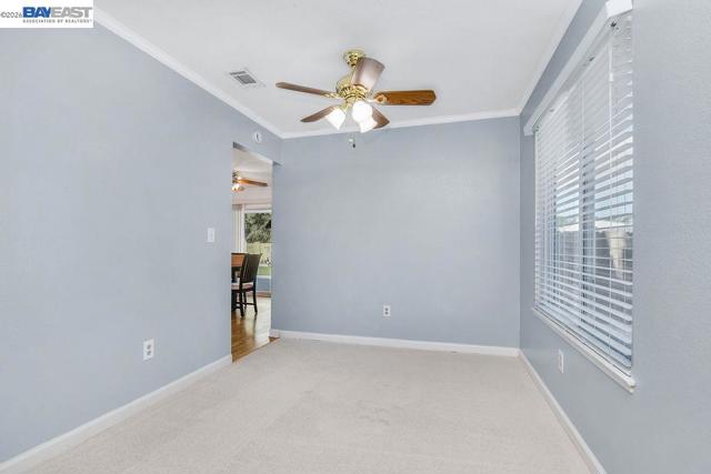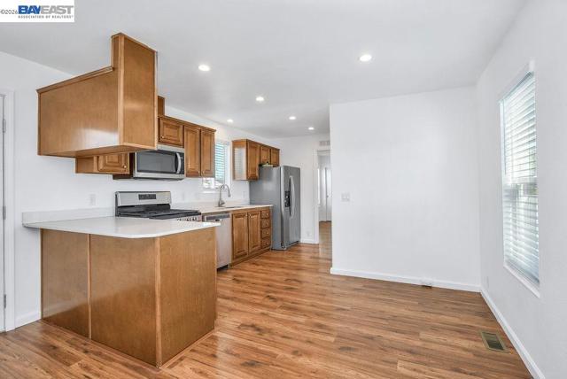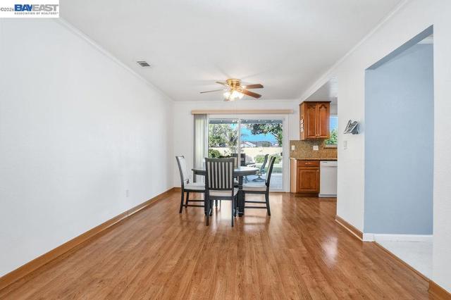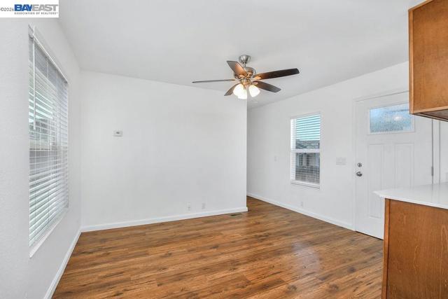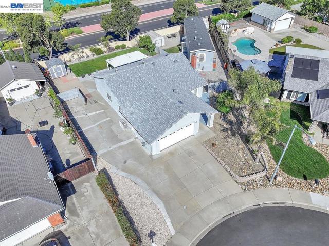 Located in the Springtown neighborhood of North Livermore, this versatile property offers two homes on a 0.26-acre lot, ideal for multi-generational living, rental income, or flexible lifestyle needs. Situated on a quiet cul-de-sac with no rear neighbors, the setting provides added privacy and functionality. The main residence features approximately 1,405 sq ft with 4 bedrooms and 2 bathrooms, offering a traditional floor plan with a formal living room highlighted by a classic brick fireplace and a separate formal dining room. The kitchen is equipped with granite countertops and recessed lighting, creating a bright and functional space for everyday living. Recent updates include fresh interior and exterior paint and new carpet, enhancing the home's overall appeal. The detached ADU is approximately 728 sq ft and a rare 2-bedroom, 1-bath layout. It features its own private entrance, fenced yard, storage area, laundry room, and an open kitchen and living room design, perfect for extended family or rental use. The expansive lot includes a covered patio, well-maintained lawn, storage shed, a variety of fruit trees including plum, lemon, and nectarine, and a large side yard with ample space for RV or boat parking.