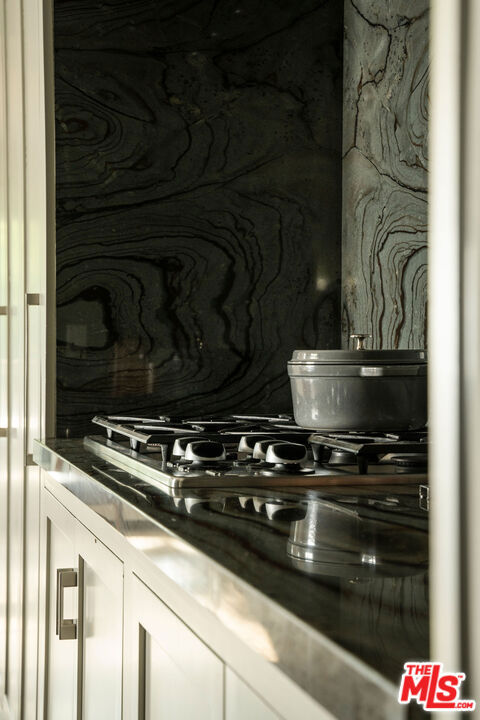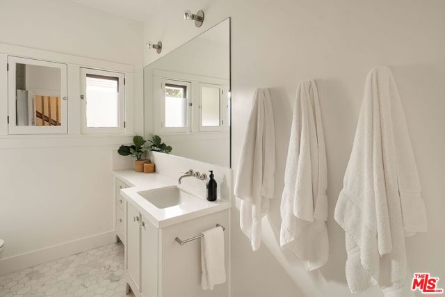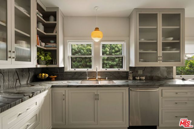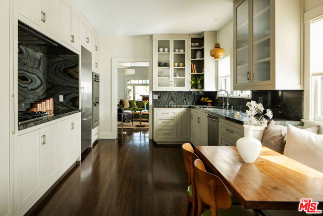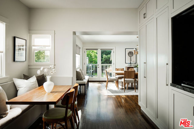 Set in one of Eagle Rock's most sought-after pockets, this updated Craftsman stands apart for its thoughtful layout, designer finishes, and location within the Dahlia Heights Elementary district, north of Colorado. From the street, it feels established and inviting, with a wide front porch and drought-tolerant Australian native landscaping that creates both beauty and ease. Inside, natural light moves effortlessly through the home, highlighting rich wood floors and a layout that feels both intentional and easy to live in. At the center of the home, the kitchen is entirely custom built to maximize the scale of the space, with bookmatched Azul Mary quartzite, sourced from Brazil, wrapping the counters and backsplash to create a striking focal point that is as durable as it is beautiful. A cozy built-in nook offers the perfect spot for casual meals, while the kitchen's placement between the formal living and dining rooms allows everything to flow naturally. High-end appliances include a Miele refrigerator, Bosch double oven, and Dacor cooktop. Just off the living room, pocket doors open to a den with built-in shelving overlooking the front porch, a flexible space that works equally well as a home office, family room, or additional bedroom. The main level offers three bedrooms plus this additional den or office, providing flexibility for a variety of living arrangements, while upstairs the entire level is dedicated to the primary suite, creating a true retreat complete with a corner soaking tub positioned to take in the mountain views. Out back, the property delivers on lifestyle, with a pool and spa anchoring the yard, surrounded by mature greenery, multiple areas to relax or entertain, and a producing bacon avocado tree that adds something truly special. A detached garage offers meaningful flexibility for a workshop, studio, gym, or future guest space, while a rare basement provides additional storage or usable space seldom found in California homes. Just moments from Colorado Boulevard's best dining, coffee, and neighborhood favorites, yet tucked into a quieter residential setting, this is a Craftsman where character, setting, and finish come together with intention.