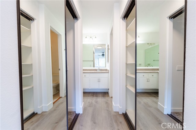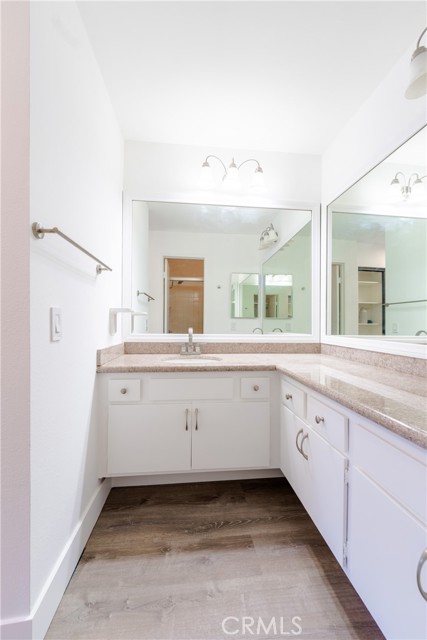 Welcome to this updated townhome located in the gated community of Arbor Park in Valencia. This unit is on the top level of the building. It is a short walk to the pool and spa. Features include wood like laminate flooring and vaulted ceilings. A spiral staircase leads to the upstairs 3rd bedroom that has a closet. The primary suite has an en-suite bathroom and large closet. It also has private access to the balcony. There is also a deck in the front. The second bedroom is adjacent to a full bathroom. The kitchen has been updated and includes laundry hook ups. There is a private garage that accommodates two cars. Location is convenient to shopping, entertainment, and freeway access.